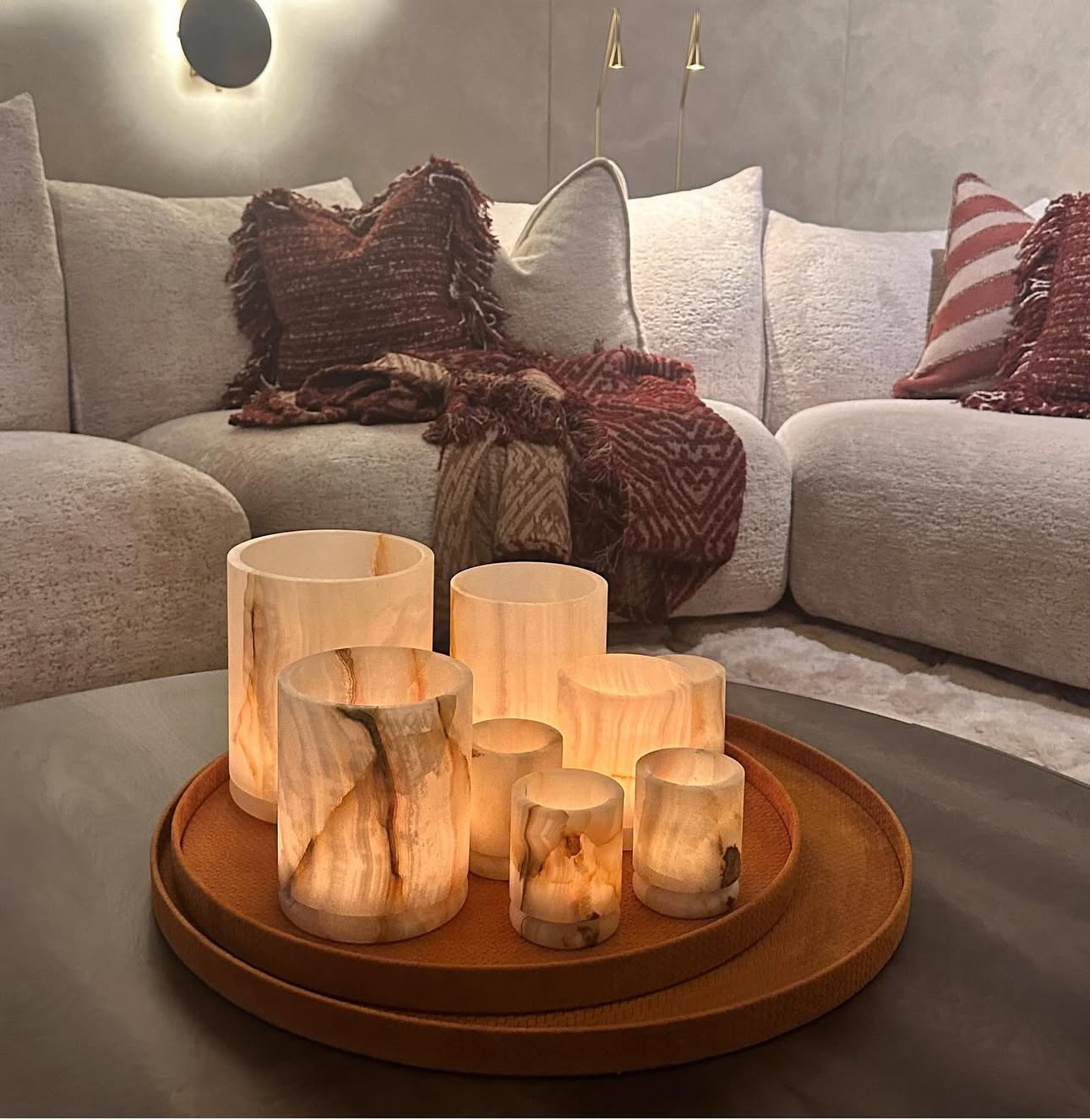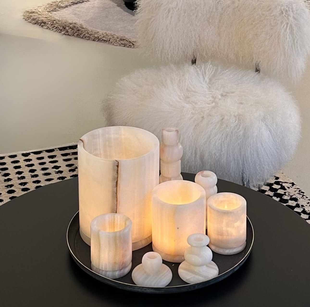 Handsmíðuð kertalukt Zaconi úr ónyx, náttúrulegum stein úr steinefnum er sannarlega einstakur. Þegar kveikt er á kerti í luktinni tendrast ljósið í gegnum steininn og luktin lýsist upp. Hreyfingin úr náttúrunni og mýkt steinsins gerir andrúmsloftið einstaklega fallegt. Tímalaus hönnun, þar sem list náttúrunnar lýsir í gegnum æðar og litamun og lýsa upp rými með heillandi aðdráttarafli.