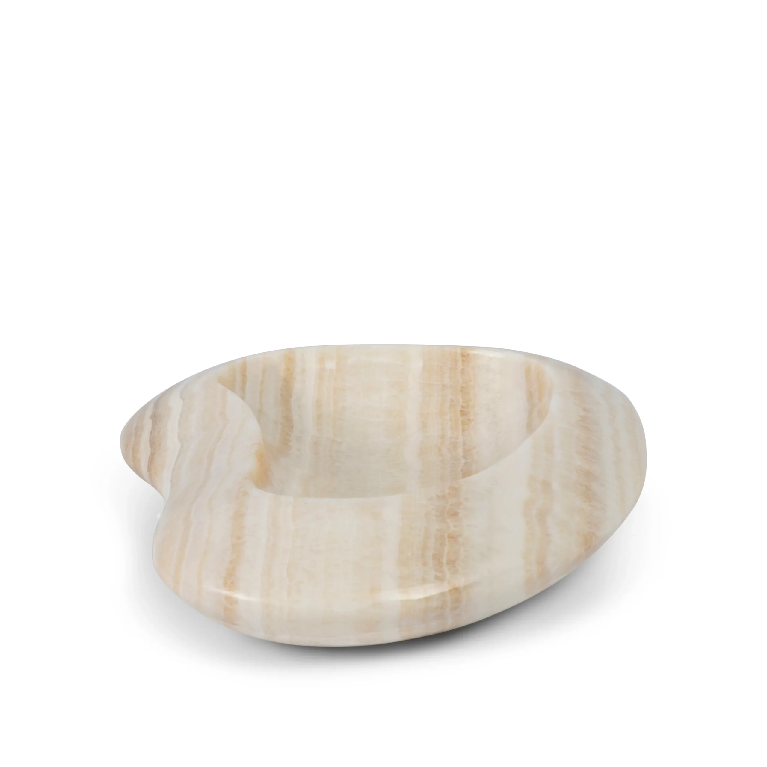 Lyftu upp rýminu þínu með náttúrufegurð hvíts og karamellu onyx. Þetta skúlptúra skrautverk er meira en bara hlutur - það endurspeglar fágaðan smekk og sérstöðu.