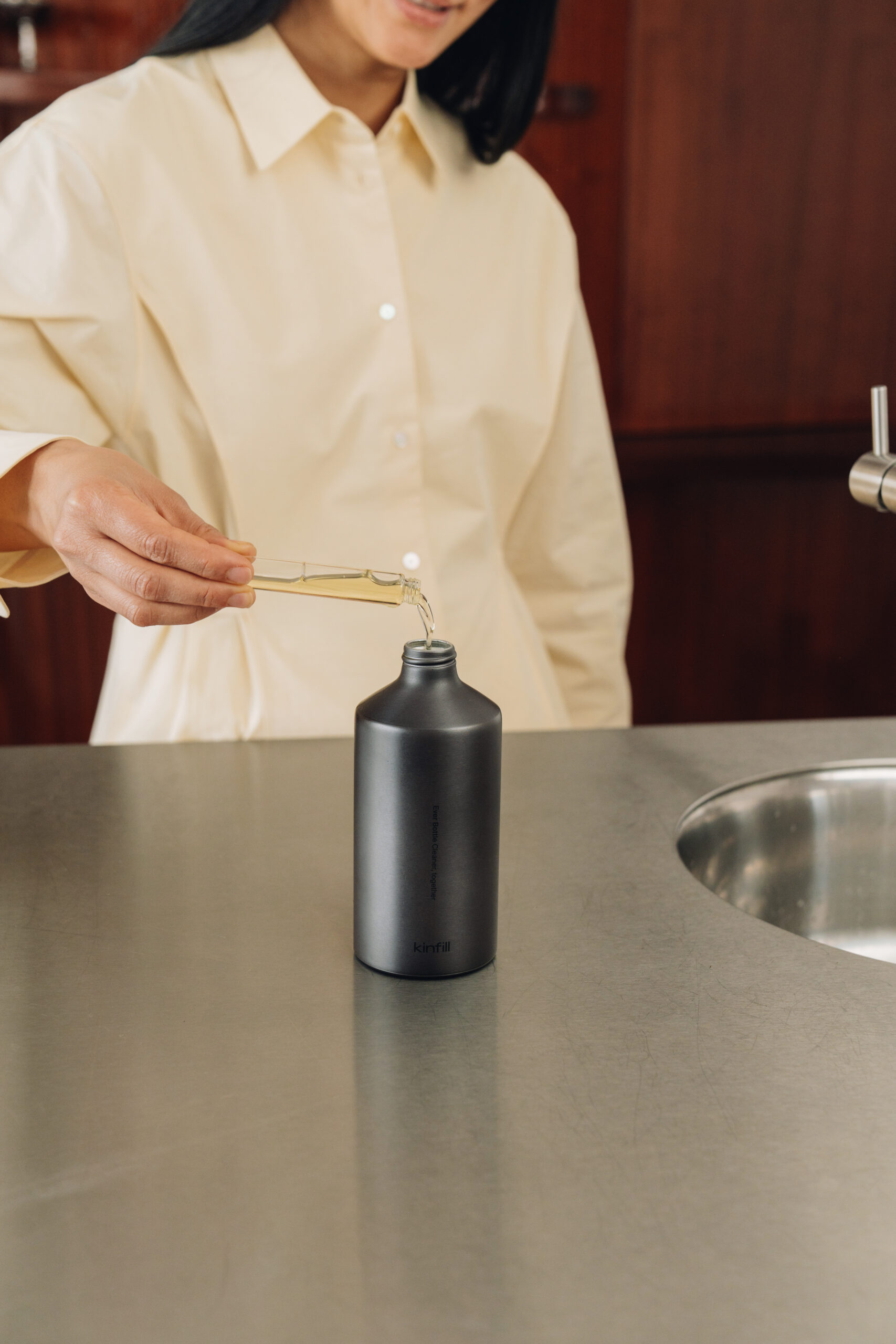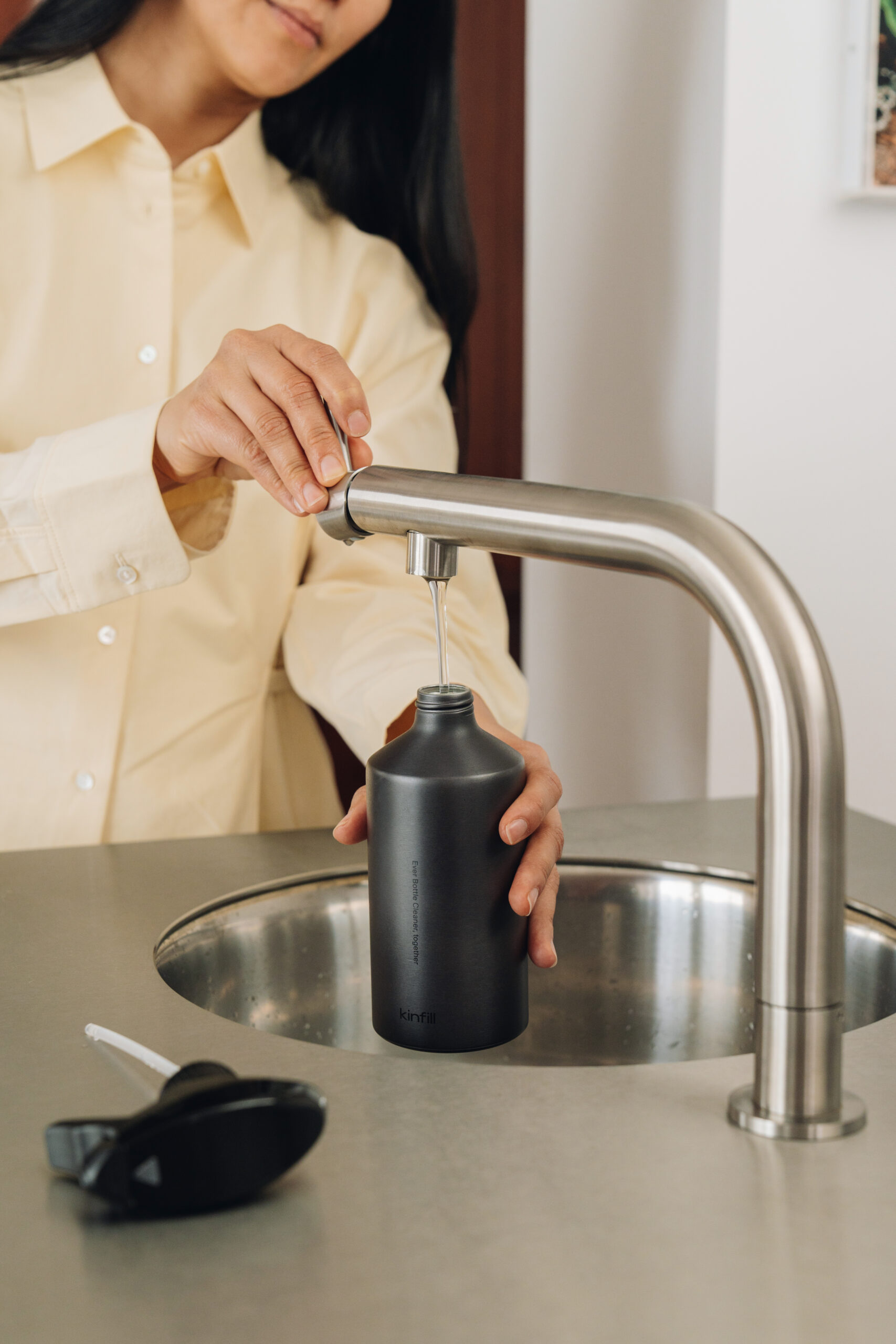 Sjálfbær lífsstíll á einfaldan hátt. Áfyllingarkerfið hjá Kinfill fjarlægir einnota plast og lágmarkar útsetningu fyrir örplasti í daglegu lífi þínu til frambúðar. Þú verslar flöskuna einu sinni og eftir það áfyllingu eftir þörfum.