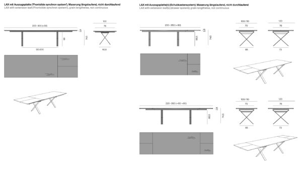 Tabletop made from glued solid wood. Top thickness: 2,8 cm.