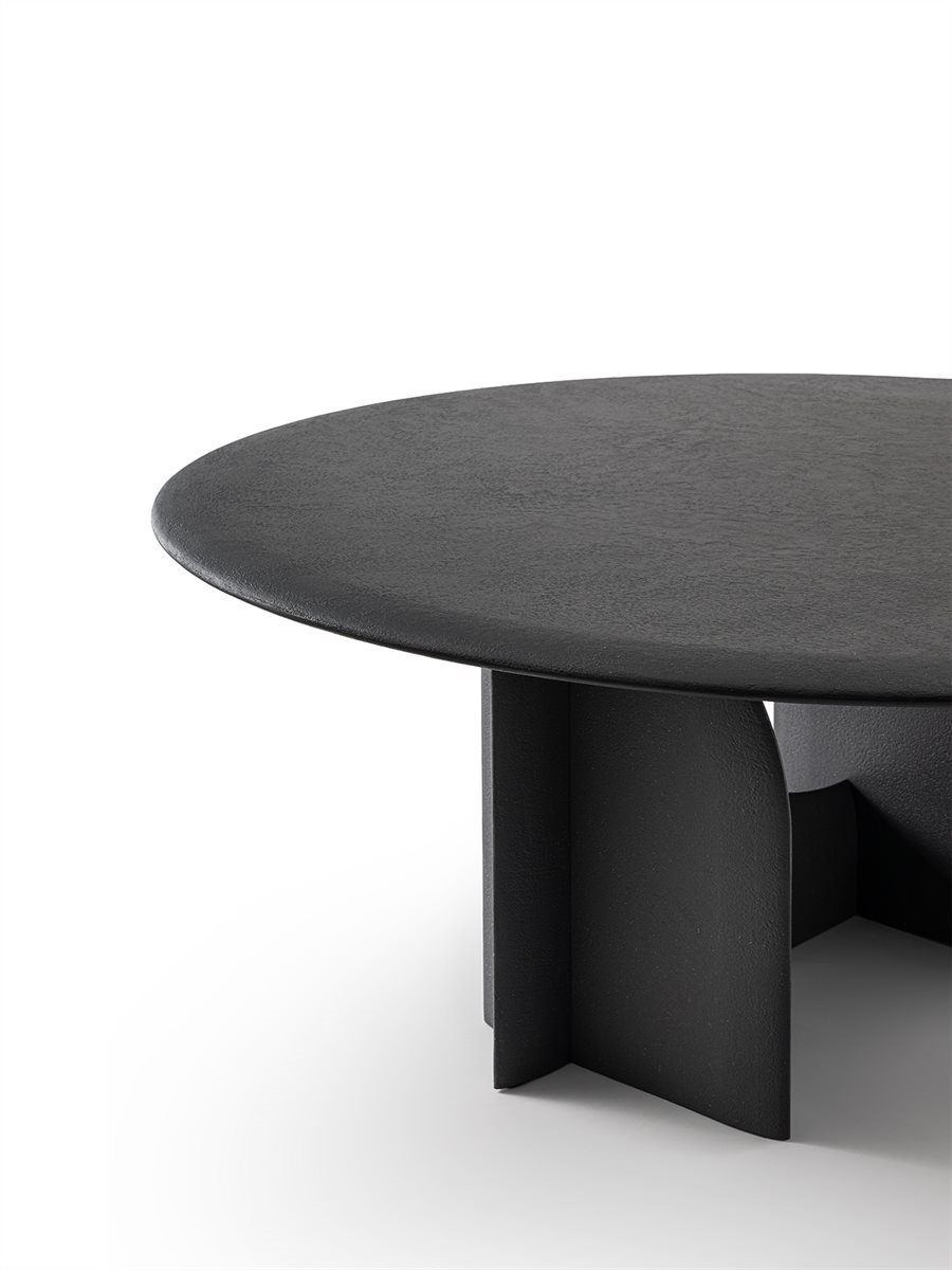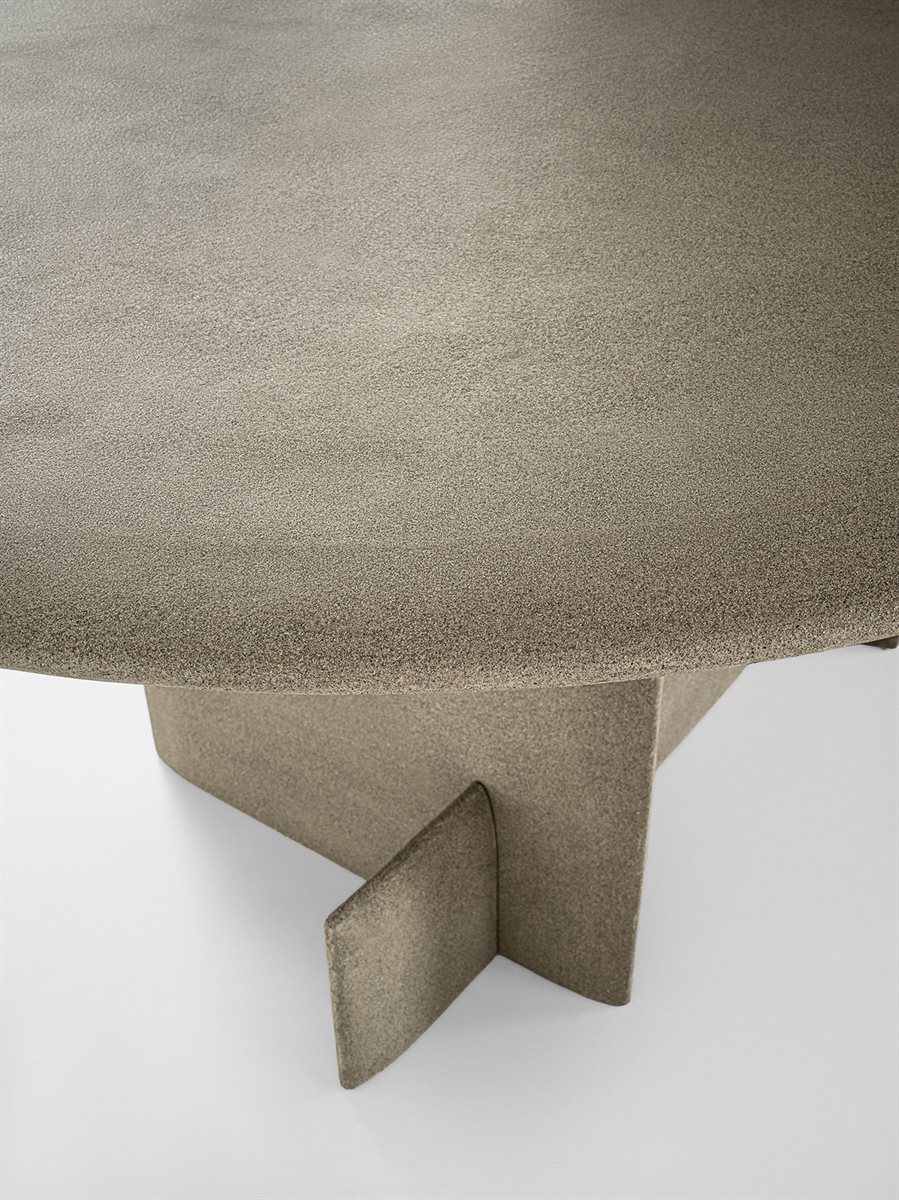 Table made by applying natural stone powder through a manual spatula technique. Available in “bruciato” and “crema” colors. Since it is a mixture of pulverized natural stones, uniformity in the color shades is not guaranteed. NEW Also available in the colour “conchiglia” and “grafite”. XL version available with two tops side by side. Joint between the tops in metal painted in the same colour as the top. Upon request, the table can be custom-made. For customized versions, the base dimensions are standard, while the quantity and type of bases will be determined at the time of order.