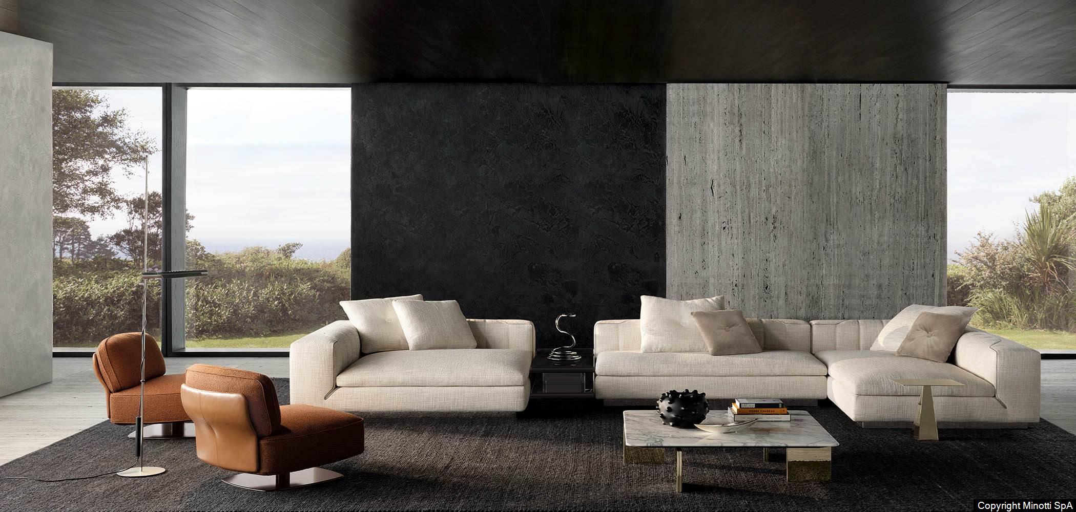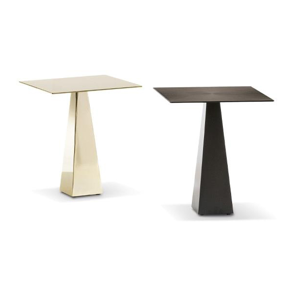 Inspired by modernism, with its clean lines and thoughtful material choices, Cameo is a side table crafted from the combination of two simple elements, resulting in a sculptural and functional piece that reflects the surroundings. The sleek, pyramid-shaped metal base supports the tabletop, which can easily overlap the seats of the sofas.