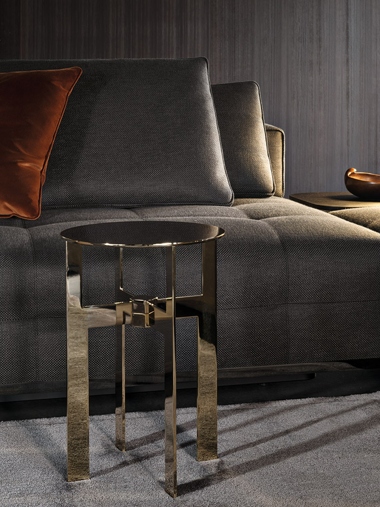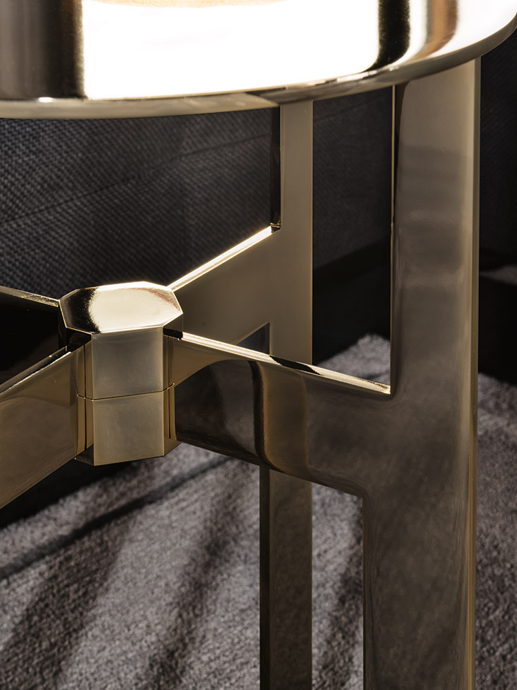The 30-cm diameter coffee table, on the other hand, is available only in an all-metal version with polished Light Gold finish, for statement-making decorative appeal and a contemporary vibe.