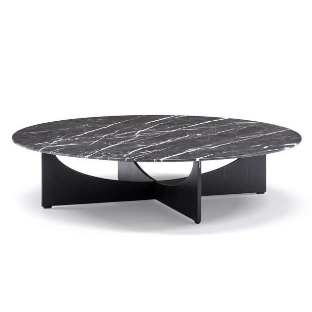 Designed by Italian-Danish duo GamFratesi, Lido is a comfortable basket-like nest, with a round seat. The design is inspired by the 1950s, one of the key themes of the 2021 Indoor Collection, expressed in a seat with a continuous, enveloping curved line that defines the padded body. The line recalls the typical stylistic marks of Brutalist architecture, with cushions adding a comfortable feel. The X-shaped sculptural base is its strong distinguishing mark. The armchair is available in one size and with two types of bases. One is the X-shaped aluminium version covered in brushed ash with a Moka open-pore lacquered finish. The other features legs in solid wood: Moka lacquered open-pore brushed ash or matt polyester lacquered Dark Brown stained Canaletto walnut. A matching footstool completes the picture. The tops of the legs feature an interesting decorative insert in Bronze varnished steel, elegantly distinguishing the point where the legs join the frame. The family also includes little dining and lounge armchairs - only with legs in solid wood - and coffee tables in one size that sit on the iconic X-shaped aluminium base covered in ash with a Moka varnished finish, with round or square top, in Bianconero marble or brushed ash wood with a Moka open-pore lacquered finish.