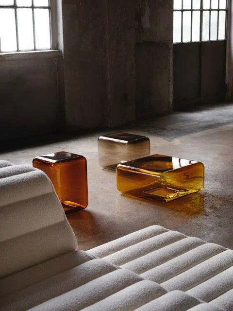 Made of blown glass coloured in a crucible. Available colours: smoked grey or amber.
