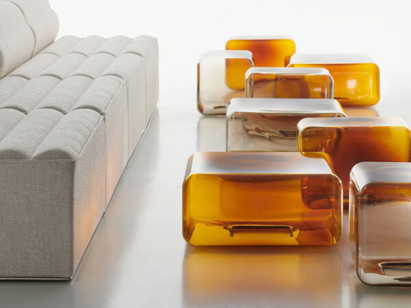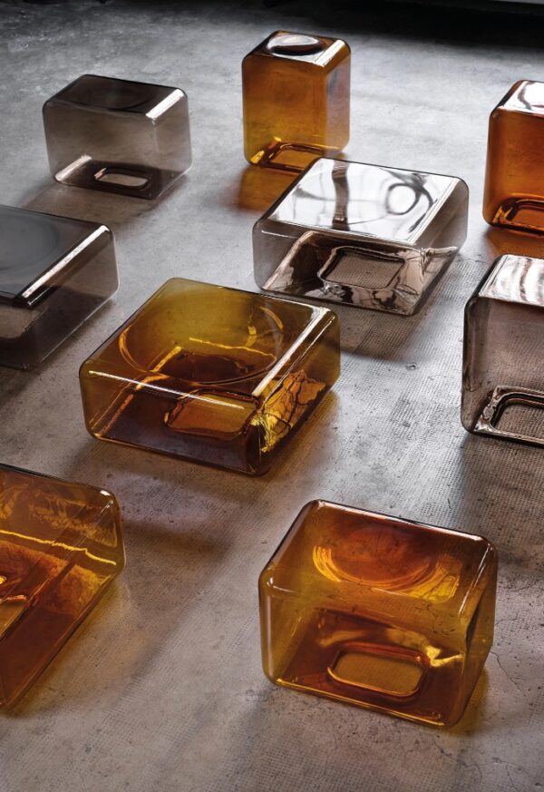 This collection embodies the elegance of pure forms, elevated through the use of hand-blown glass. Sabine Marcelis, known for her poetic and precise use of reflective surfaces and iridescent shades of colour, has designed a collection of ethereal beauty that creates extraordinary plays of light and shadow.
