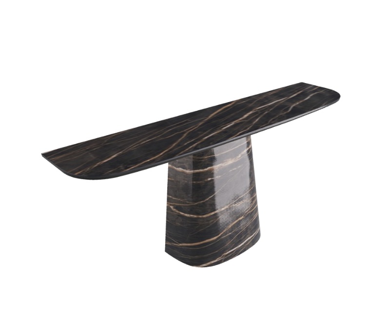 Tables with central base Rado are joined by two perfectly symmetrical hubs. One detail is noticeable on the short side of the plinth: the recessed vertical groove covered in ceramic, which breaks up the otherwise uniform surface. The result is a modern ceramic table that embodies a new contemporary aesthetic, combining classic finishes inspired by natural marble with previously unseen production techniques.