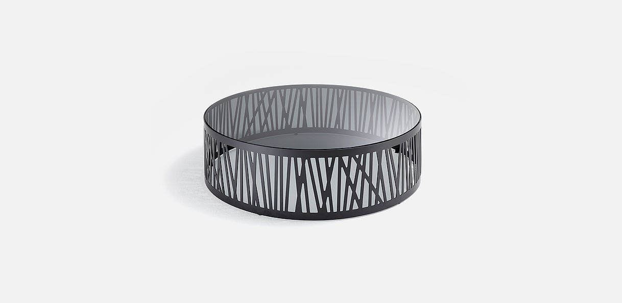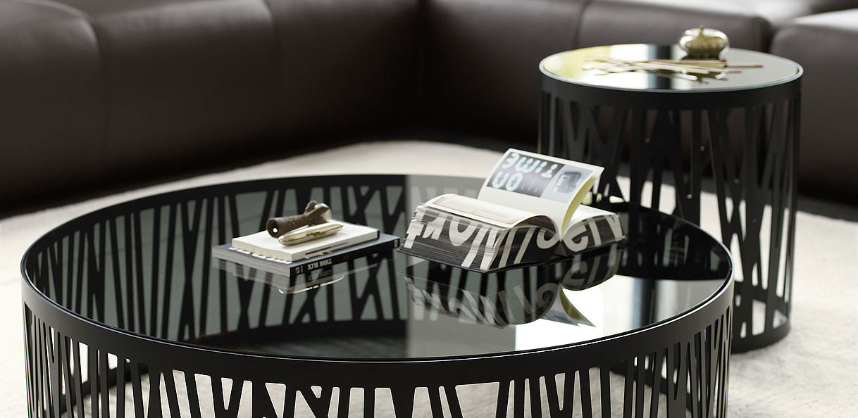 Height 44 cm: 42 cm (round). Height 29 cm: 80 cm (round) or 95 cm (round). Top: Parsol glass grey, Optiwhite glass with painted underside RAL 9003 Signal white, RAL 9017 Traffic black, RAL 1020 Olive yellow, Ceramic Calacatta or Emperador extra (laminated on clear glass) Frame: Smooth steel, powder-coated, matt: RAL 9003 Signal white, RAL 9017 Traffic black, RAL 1020 Olive yellowDesign: BECK DESIGN