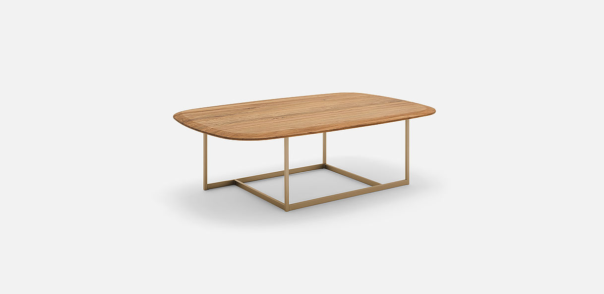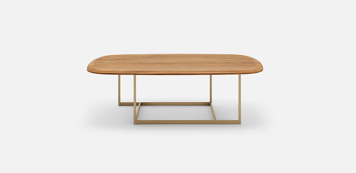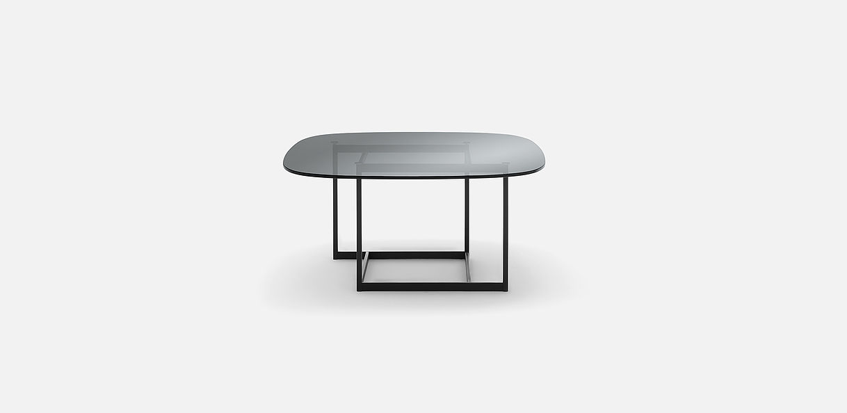 Coffee table/nesting table Dimensions: Solid wood: 80 x 80 cm: Height 42 cm, 120 x 80 cm: Height 37 cm Glass: 80 x 80 cm: Height 40 cm, 120 x 80 cm: Height 35 cm Table top: Solid wood, clear varnish: oak, stained black oak or American walnut; Glass: parsol glass grey Frame: Smooth steel square tubing, powder-coated, painted in matt:RAL 9017 traffic black, RAL 7022 umbra grey, ochre-beige metallicDesign: labsdesign