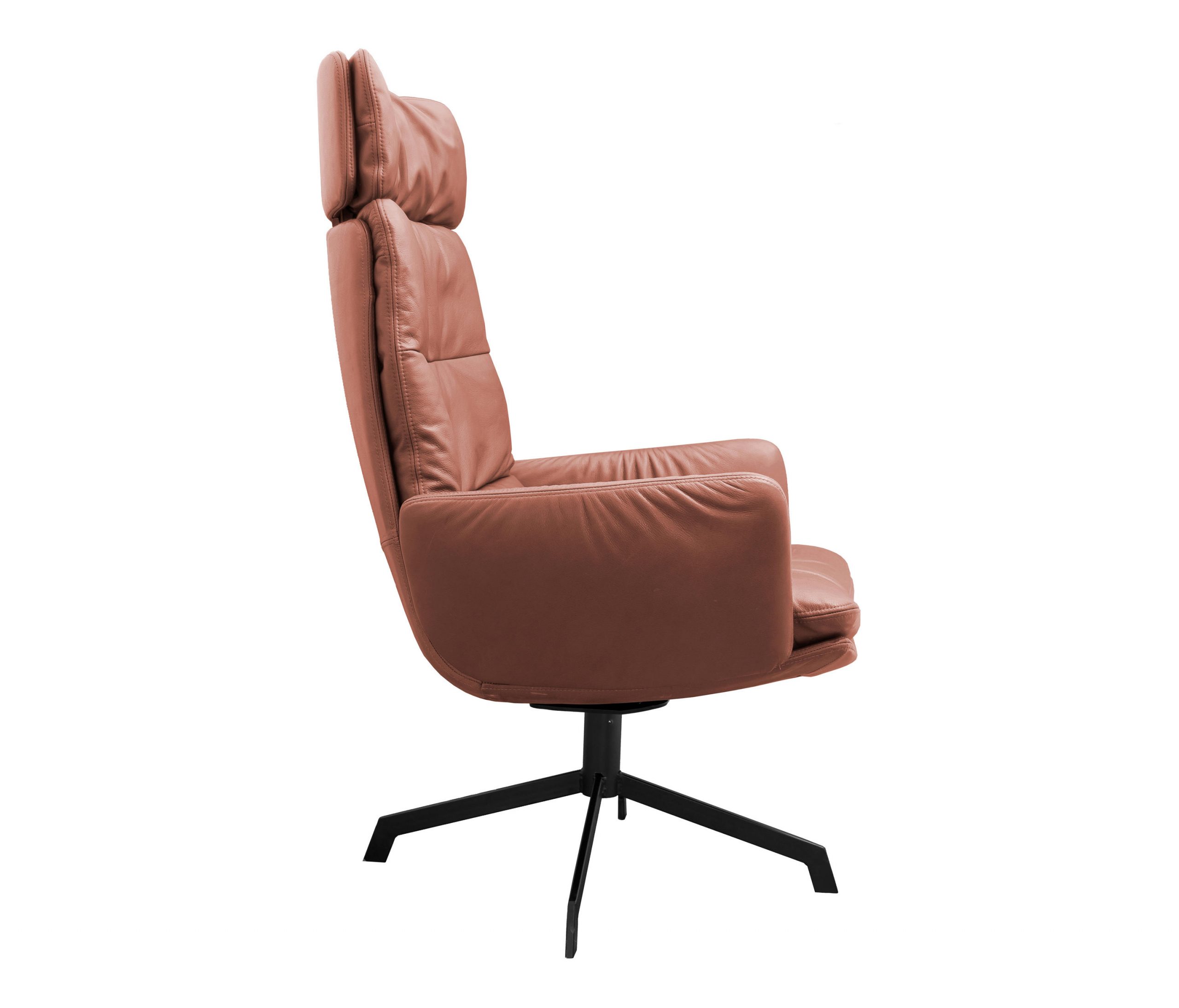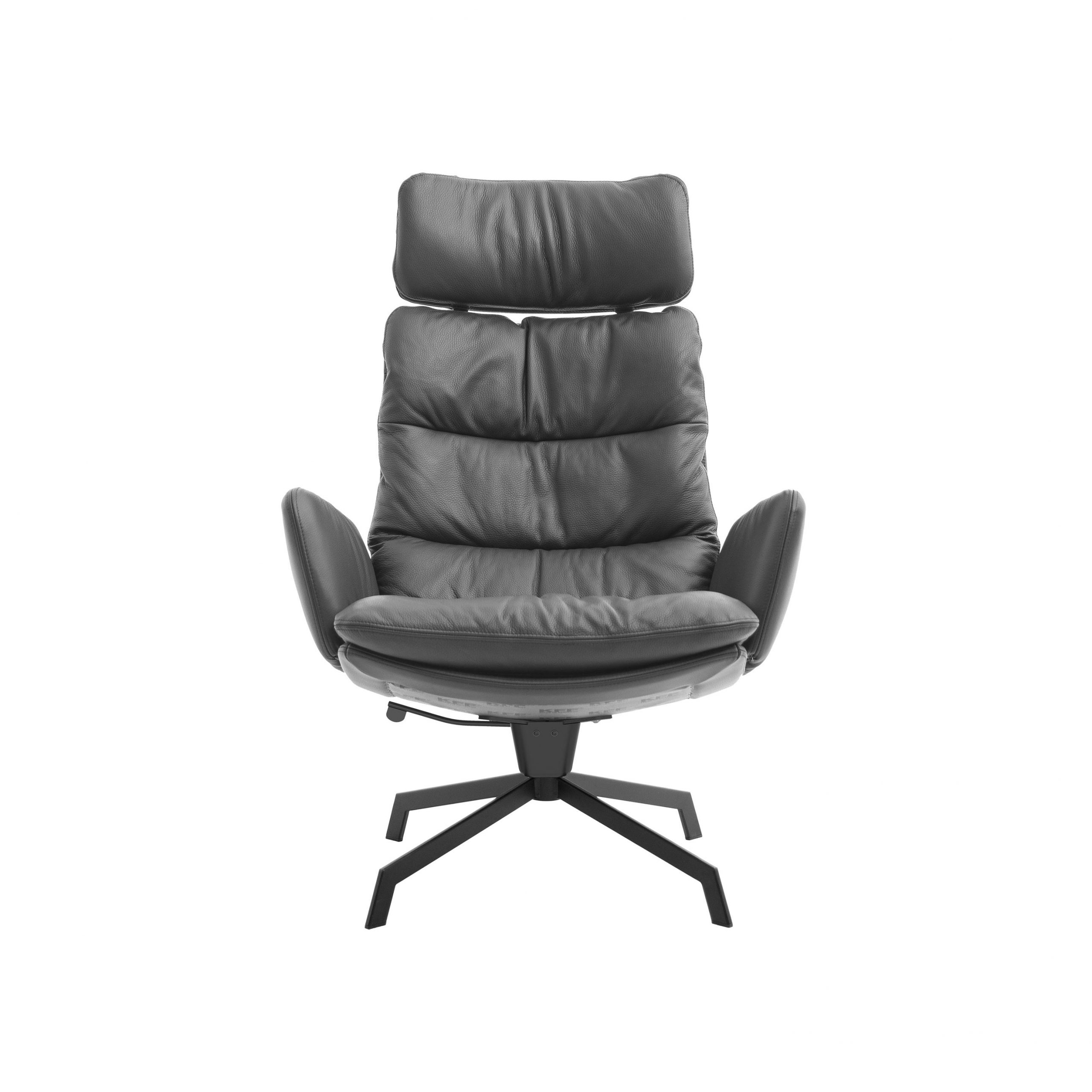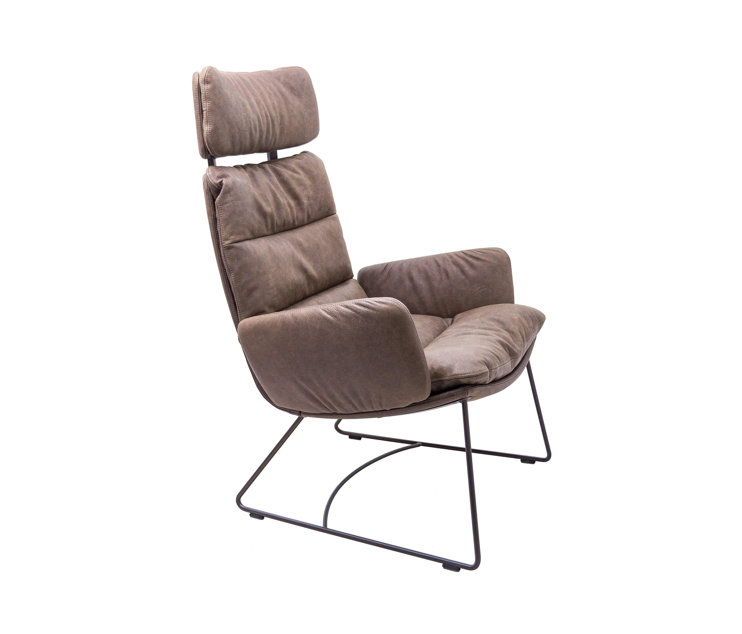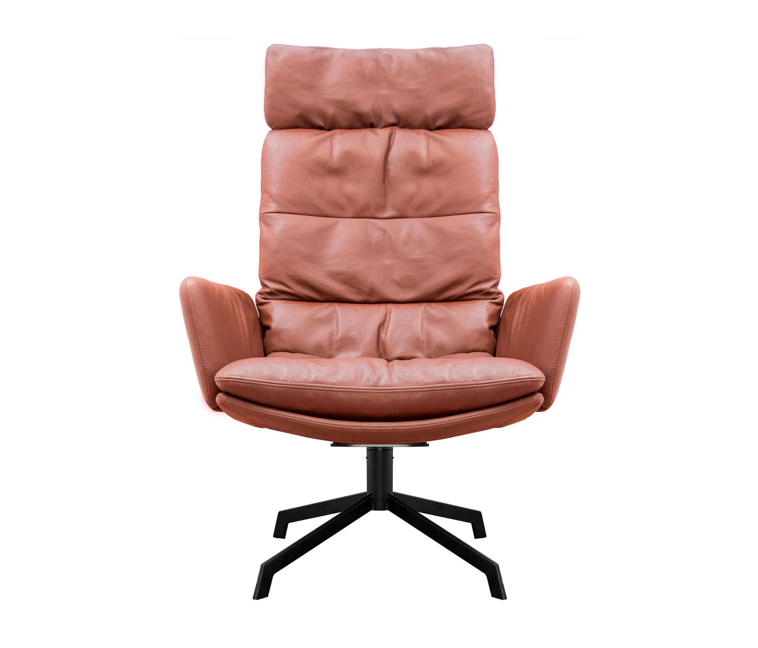 The renaissance of mid-century seating. The ARVA LOUNGE easy chair originates from an idea of Managing Director, Jens Lewe. This reinterpretation won the German Design Award 2018 and has been given an optional rocker function at imm for even more individual comfort. The easy chair — which is available in various designs, as is usual for KFF — rests on a wire skid or swivel 4-leg star frame. Its plywood shell is covered with high-quality leather or fabric and easily accommodates the pocketed, upholstered cushion. The optional armrests and adjustable headrests are covered in the same material as the shell and create a harmonious and extremely comfortable overall appearance. Alongside the ARVA easy chair, KFF is showcasing the ottoman designed for each frame, as well as a side table made from smoked glass, whose matching 4-leg star frame creates a balanced composition, together with the easy chair and ottoman.