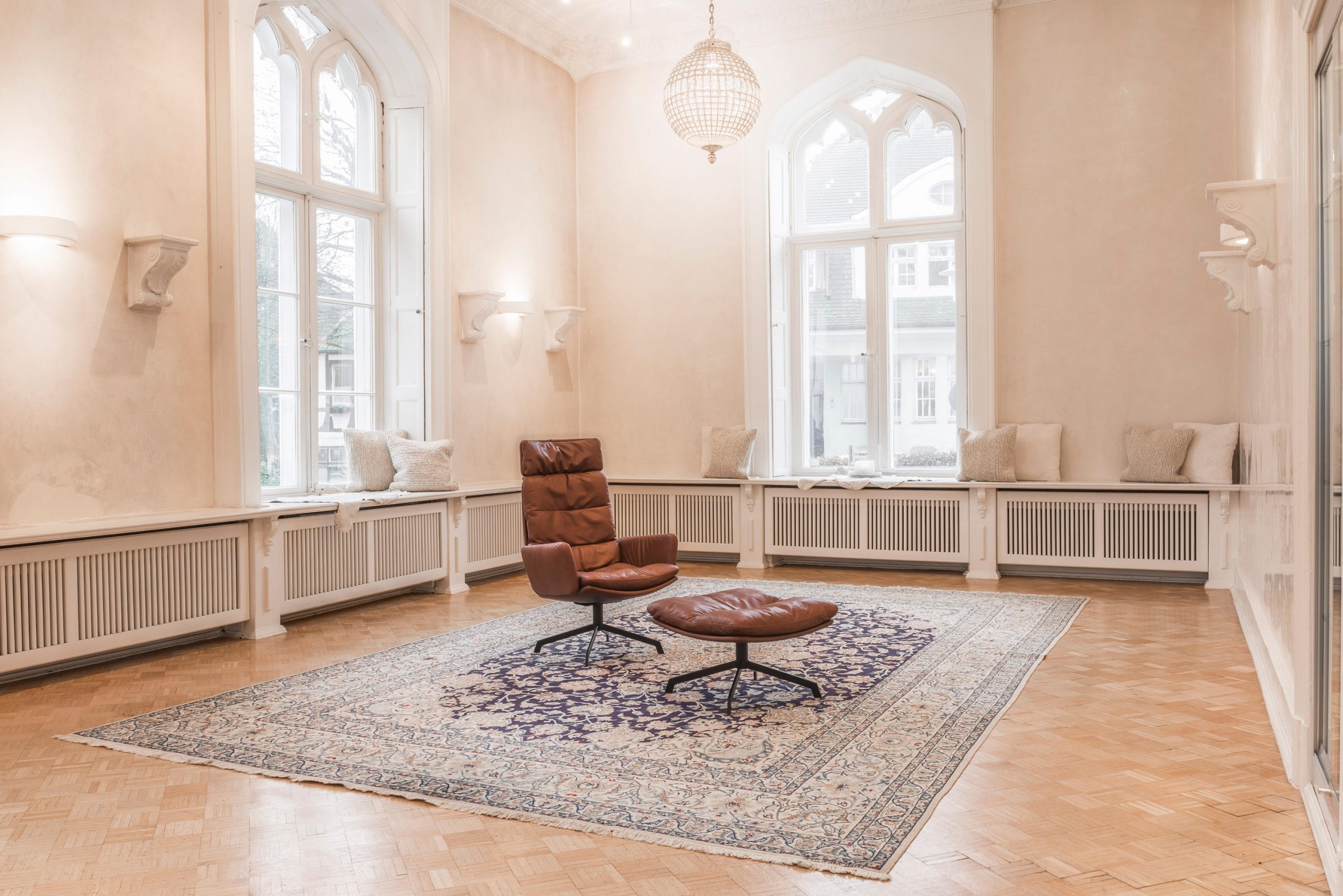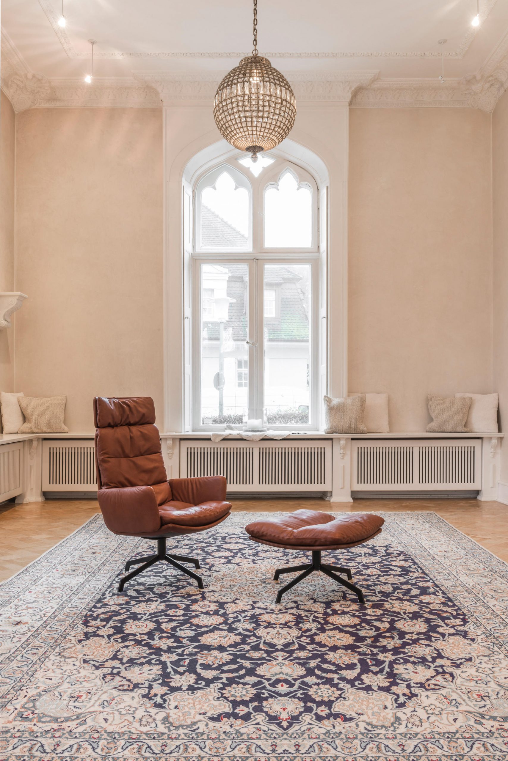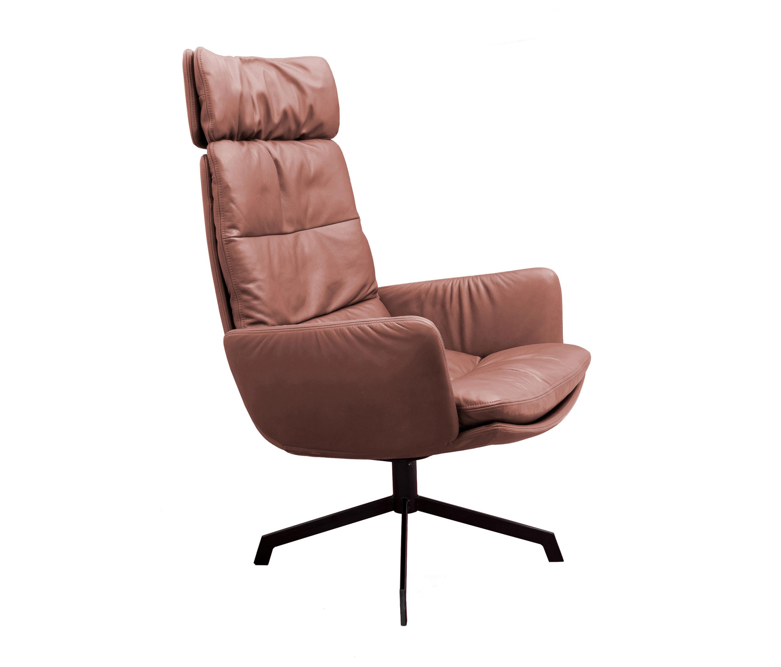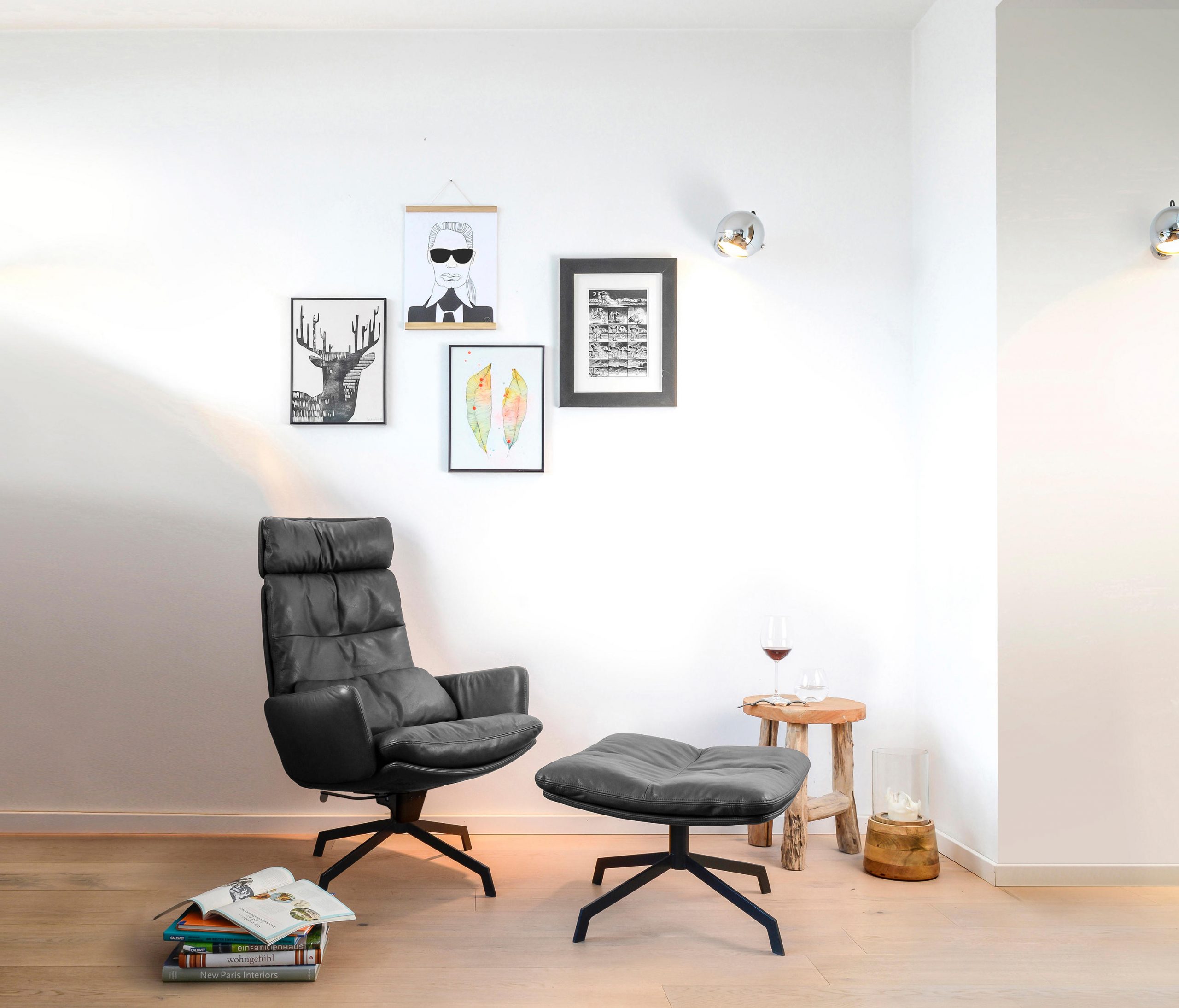 The renaissance of mid-century seating. The ARVA LOUNGE easy chair originates from an idea of Managing Director, Jens Lewe. This reinterpretation won the German Design Award 2018 and has been given an optional rocker function at imm for even more individual comfort. The easy chair — which is available in various designs, as is usual for KFF — rests on a wire skid or swivel 4-leg star frame. Its plywood shell is covered with high-quality leather or fabric and easily accommodates the pocketed, upholstered cushion. The optional armrests and adjustable headrests are covered in the same material as the shell and create a harmonious and extremely comfortable overall appearance. Alongside the ARVA easy chair, KFF is showcasing the ottoman designed for each frame, as well as a side table made from smoked glass, whose matching 4-leg star frame creates a balanced composition, together with the easy chair and ottoman.