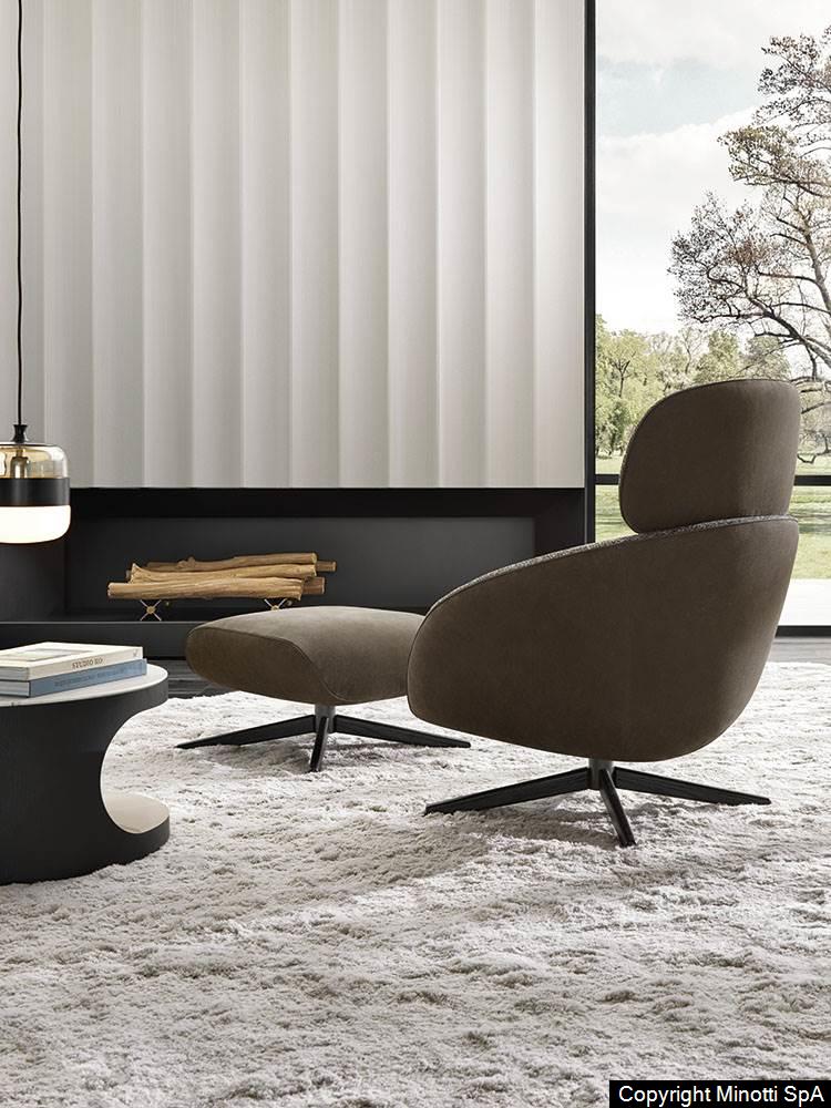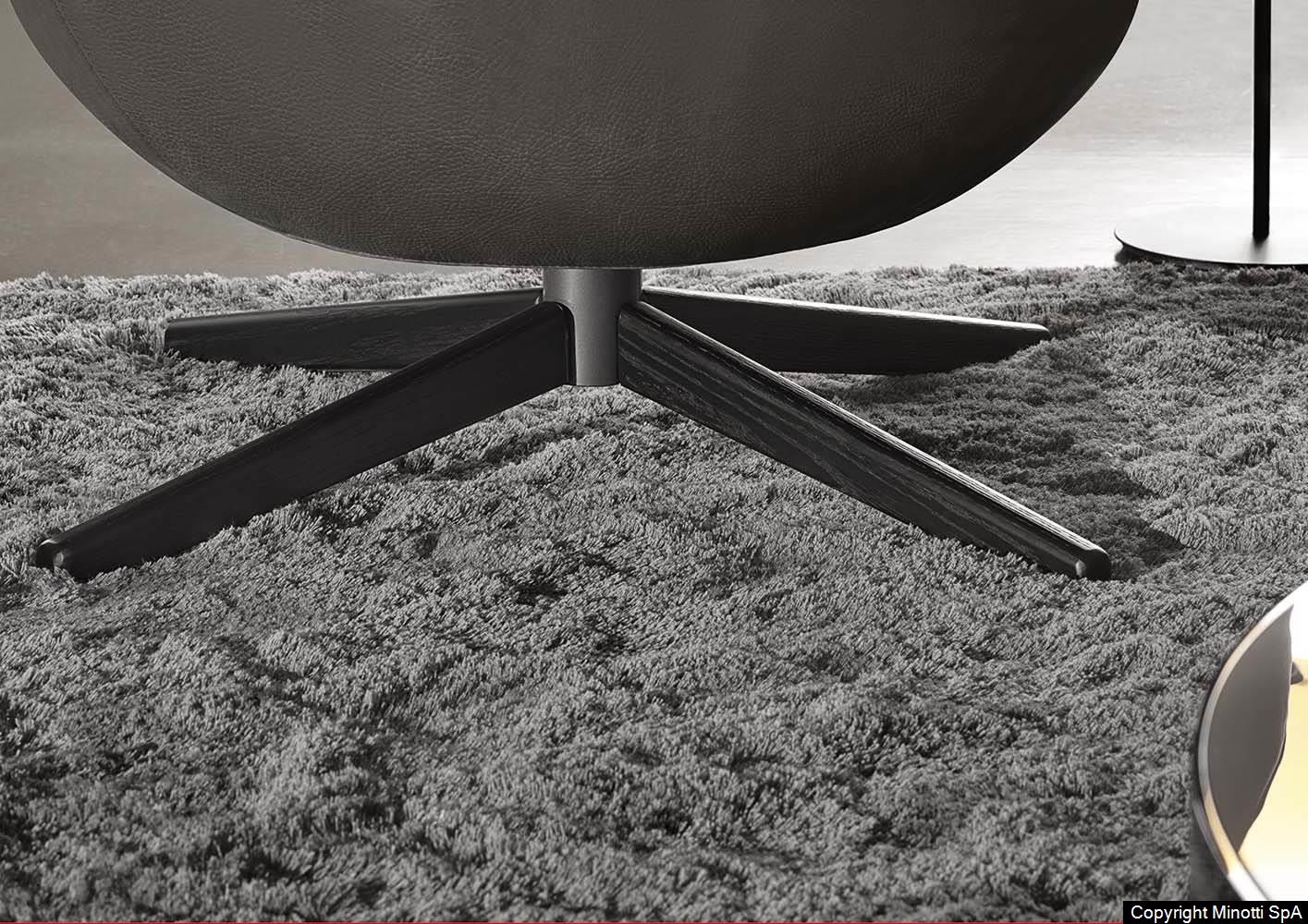 The fixed cross structure in Light Bronze-coloured metal with the feet sheathed in Moka-shaded oak is a surprising detail that reflects the virtuosity of Minotti in combining different materials. Worked with the company's unique savoir-faire, they highlight its craftsmanship tradition.