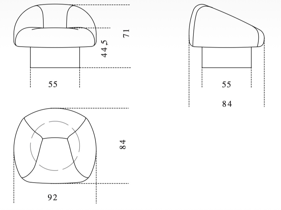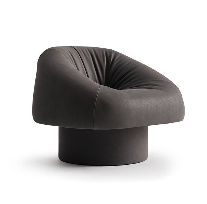 Armchair with 180° swivel movement with return with internal structure in wood and by-products. Padded with non-deformable foam polyurethane in different densities and polyester fiber. Completely covered by fabric or leather as per samples. Removable cover, not available for the following categories: Cat. L1, L2 and customer/C.O.L. leather.