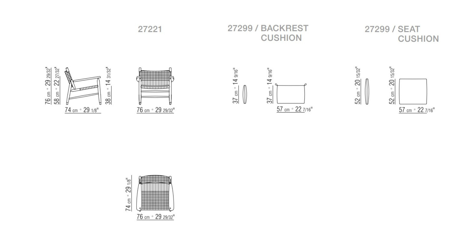 The structure is made entirely of solid ash or turned Canaletto walnut. The traditional joinery requires expert craftsmanship and gently exalts the natural texture and feel of the wood. An ancient art that dates back to Italian rural tradition, the delicate yet strong woven paper rush cord in the seat and backrest is also finely hand-crafted. Soft optional cushions held in place by slender straps add a deeper sense of welcome to the Tessa armchair.