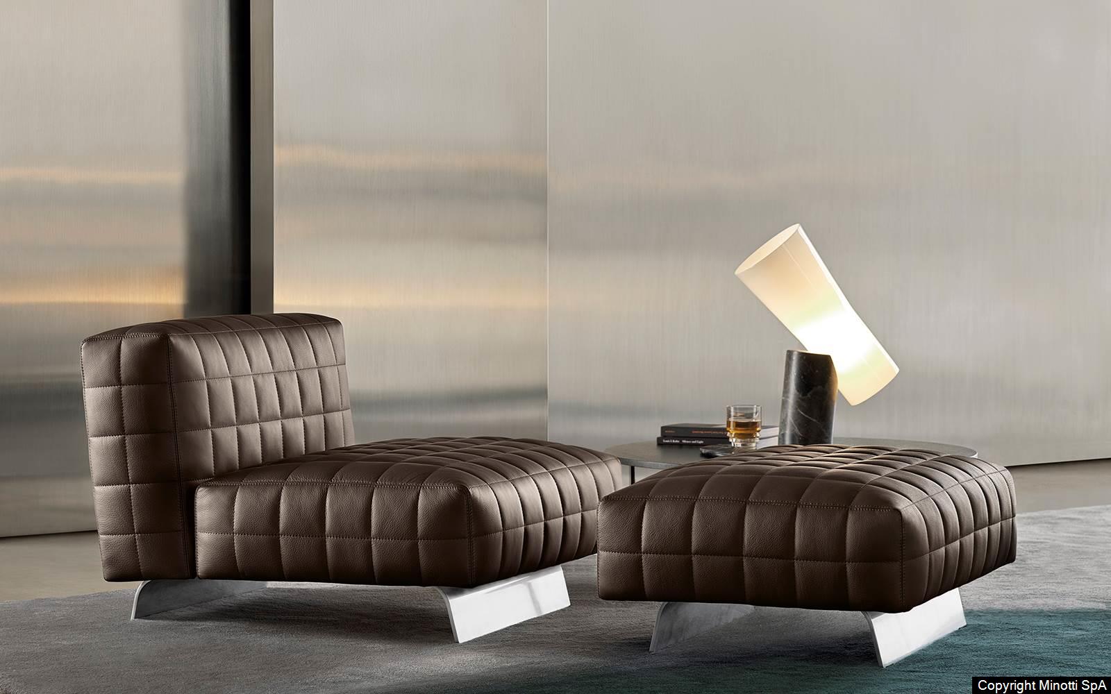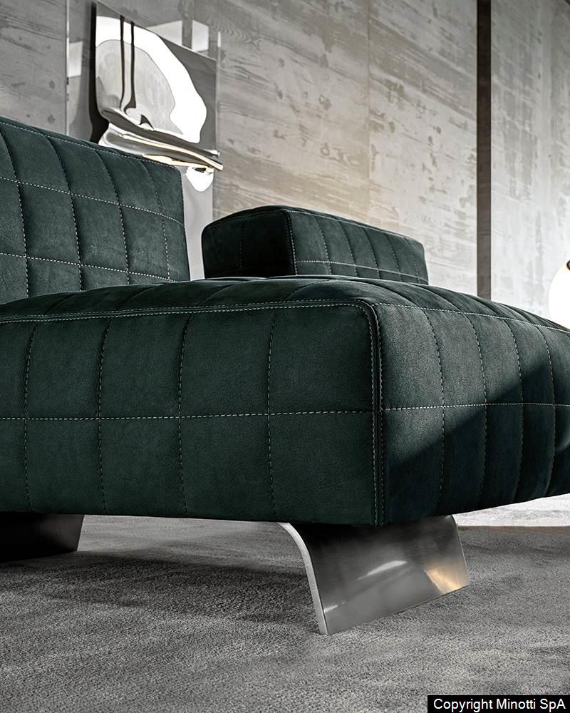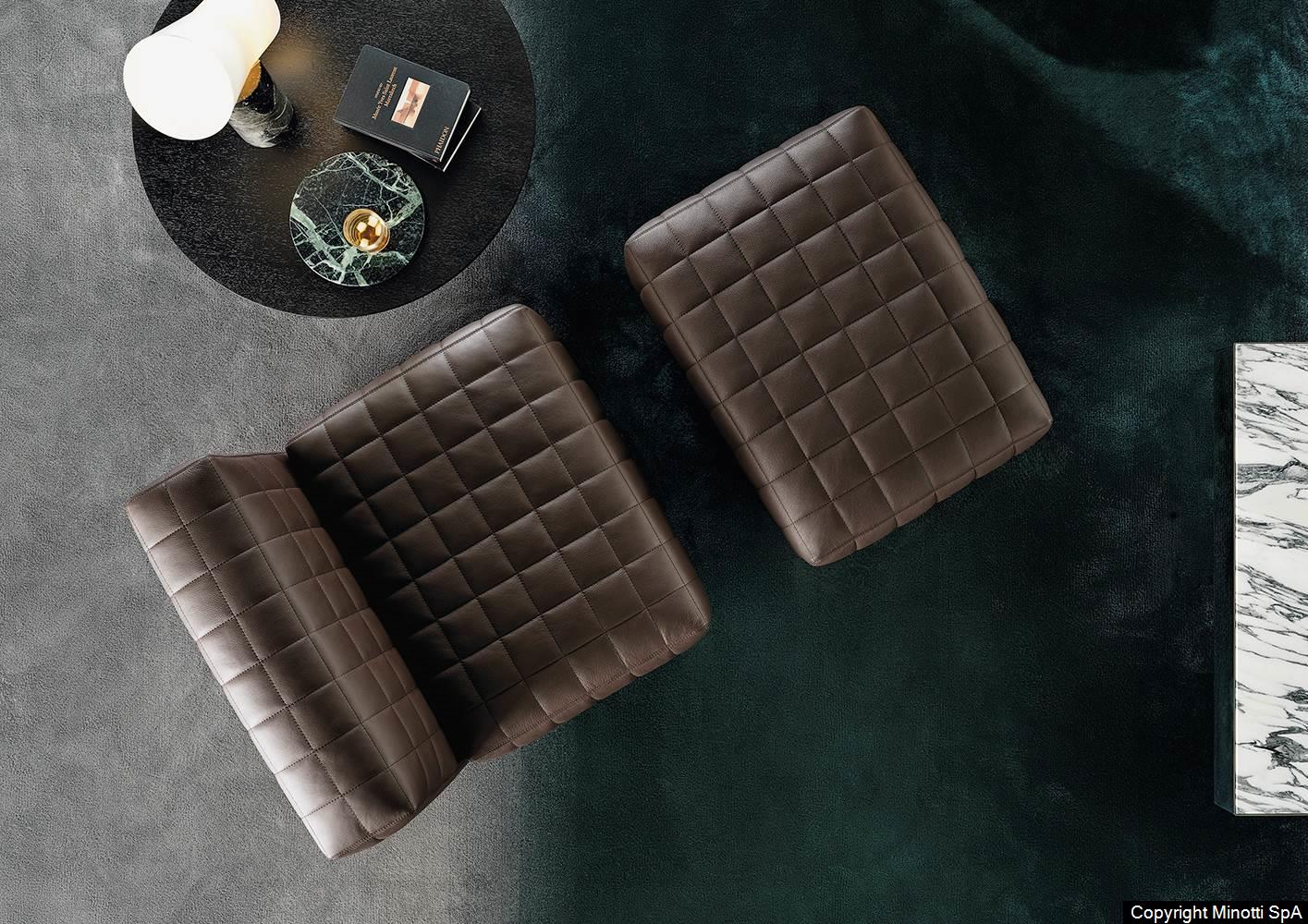 Twiggy presents itself with different elements, always distinguished by Minotti's sophisticated sartorial taste. The family originated as a single armchair in the Small, Large and Deep versions, with and without armrests, but embellished with stitching that reveals the depth of the brand's manufacturing know-how combined with its great ability to make even the most sculptural seats extremely comfortable.