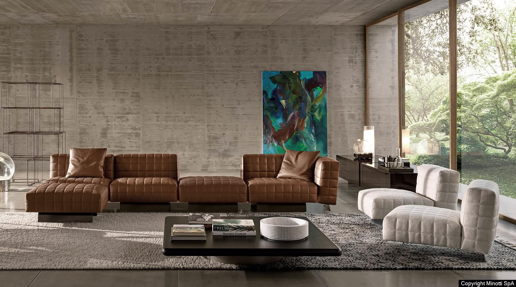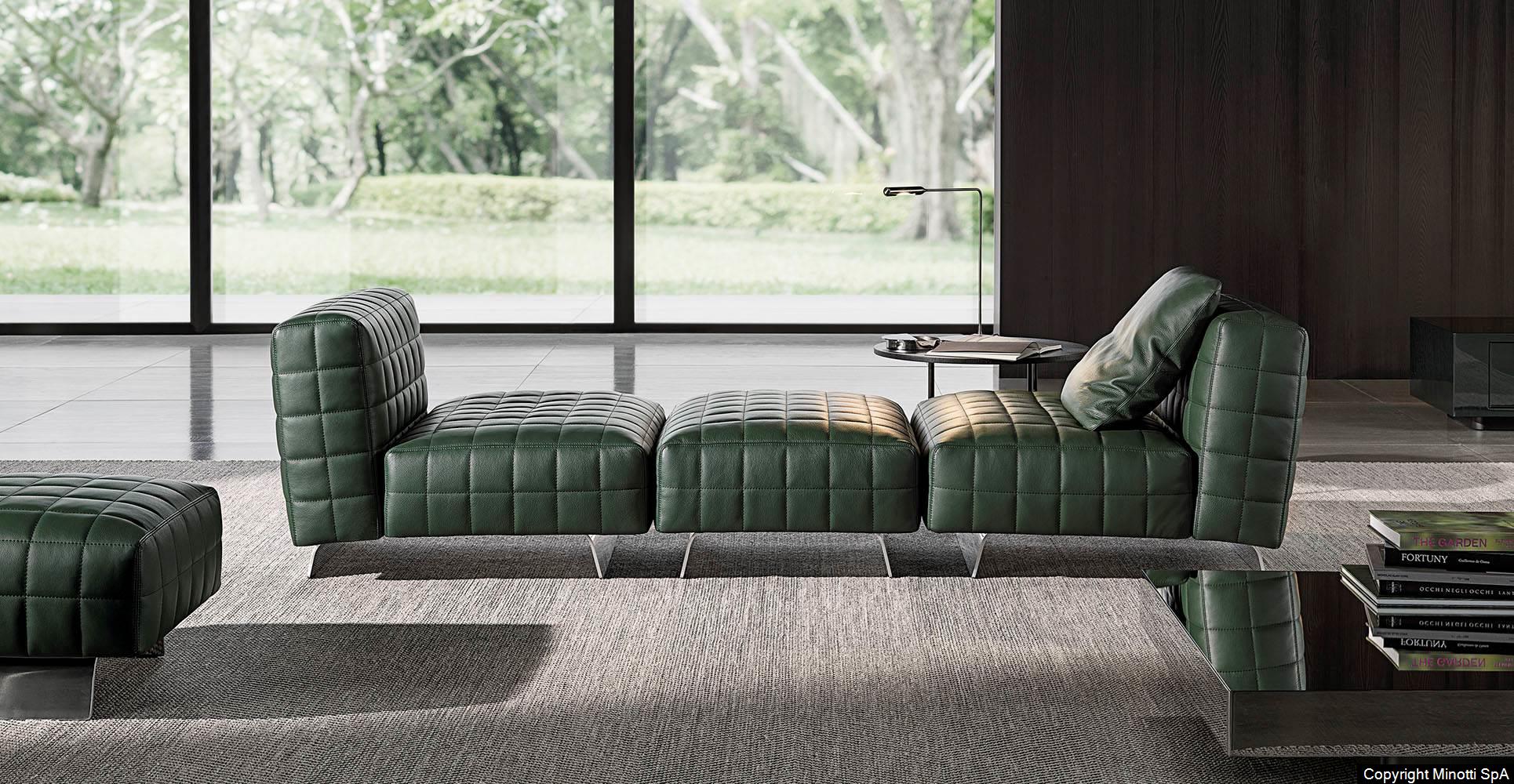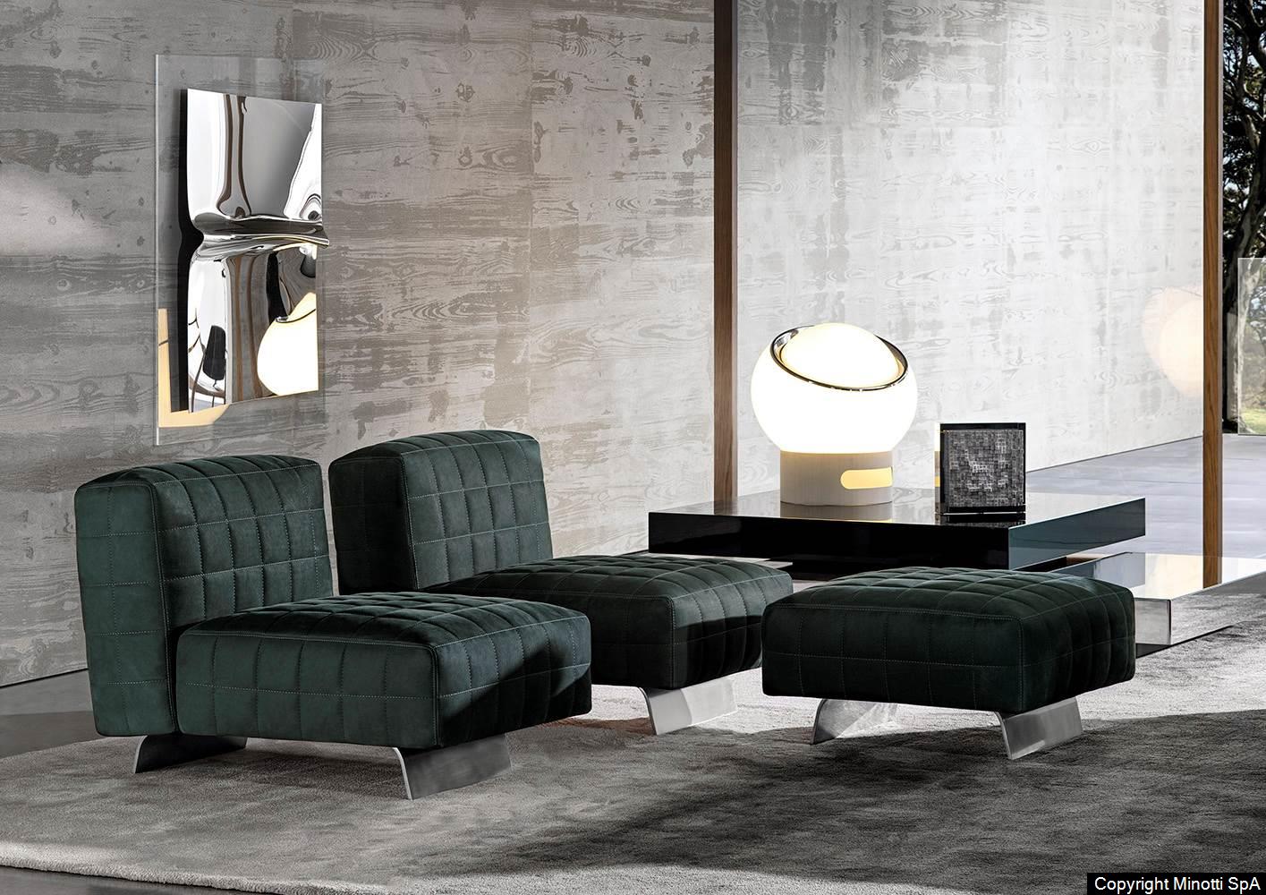 Twiggy presents itself with different elements, always distinguished by Minotti's sophisticated sartorial taste. The family originated as a single armchair in the Small, Large and Deep versions, with and without armrests, but embellished with stitching that reveals the depth of the brand's manufacturing know-how combined with its great ability to make even the most sculptural seats extremely comfortable.