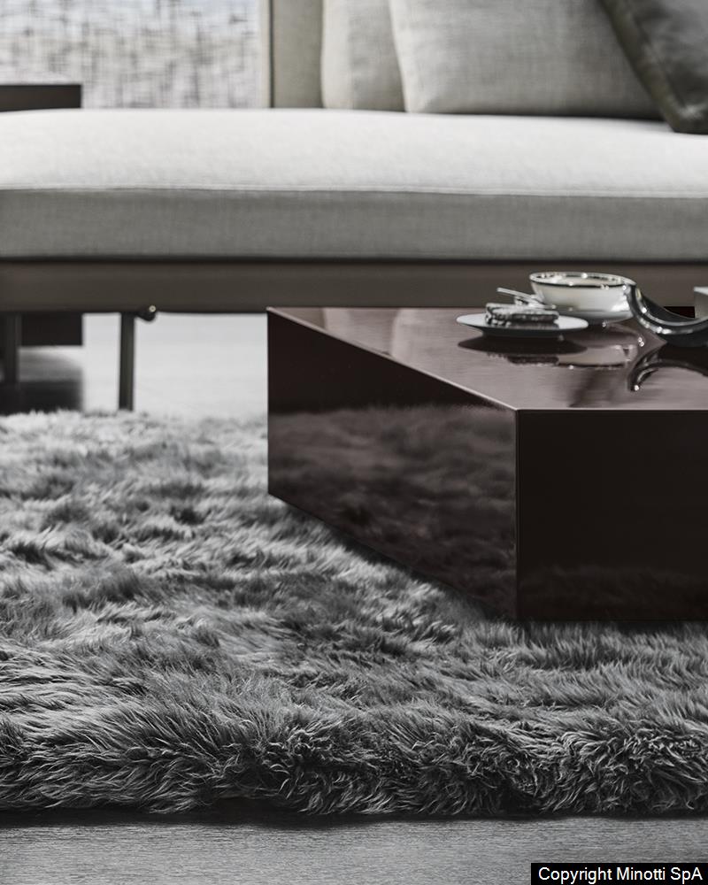 Personalised on the back with an elegant jacquard fabric featuring the Minotti logo, it guarantees anti-slip properties, thanks to a technical printed cotton fabric with micro-particles of silicone running along the perimeter sides.