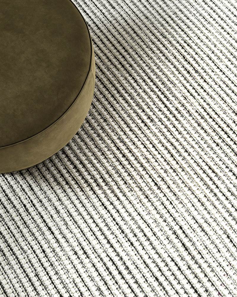 With its strong identity, more than capable of marking out the different areas of the living space, Kobe takes shape from the weave of New Zealand wool yarns that ensure high durability, sound-absorbing qualities and a pleasant, supersoft, texture. Its “Ottoman” structure is crafted by alternating a chunky, irregular weft with a thin, close-knit warp, to give the classic nuances a new look and produce an ultra-modern 3D appeal.