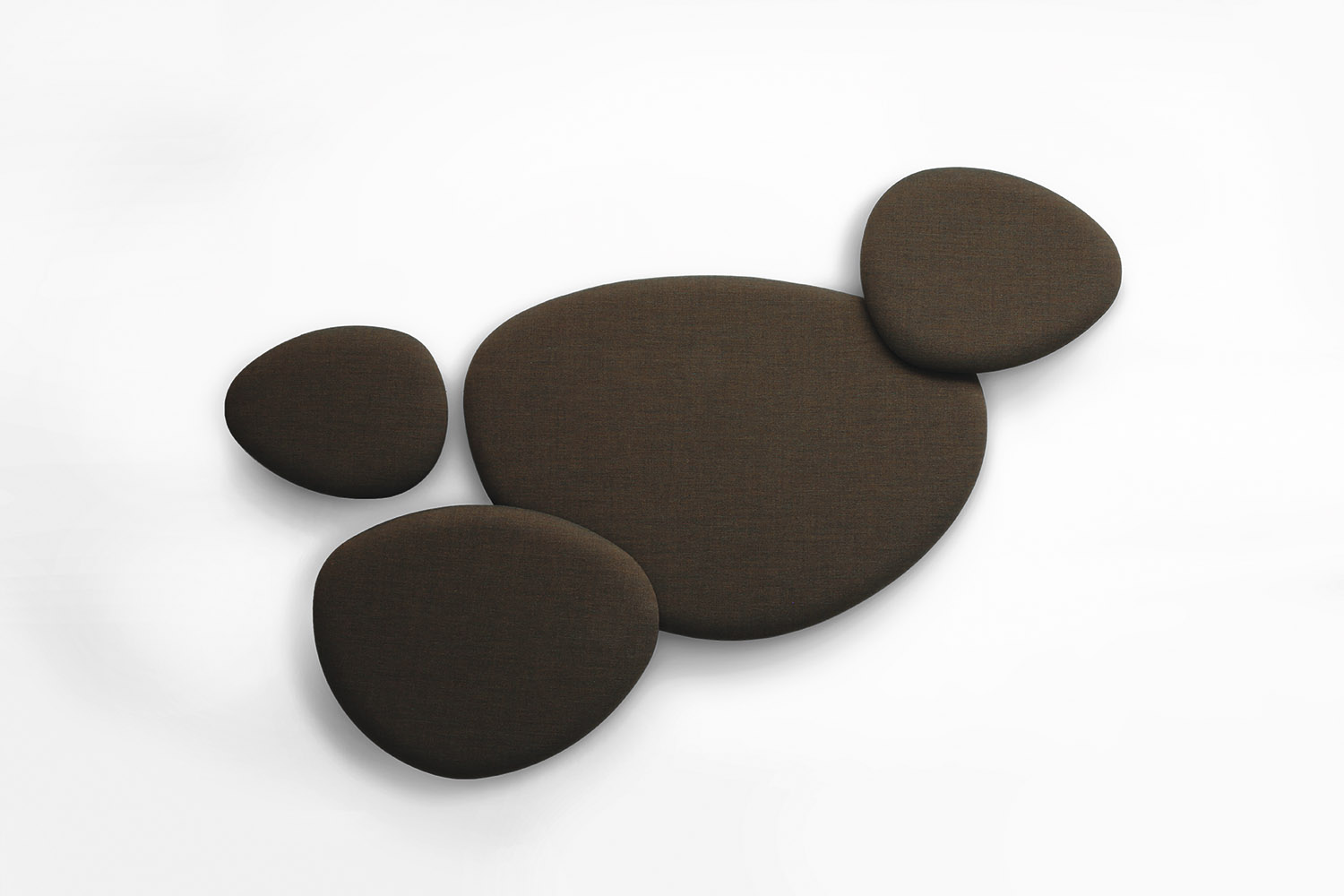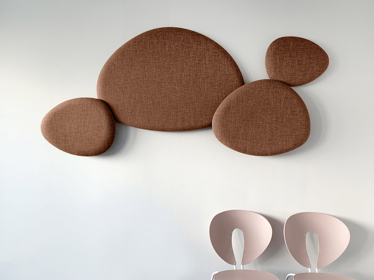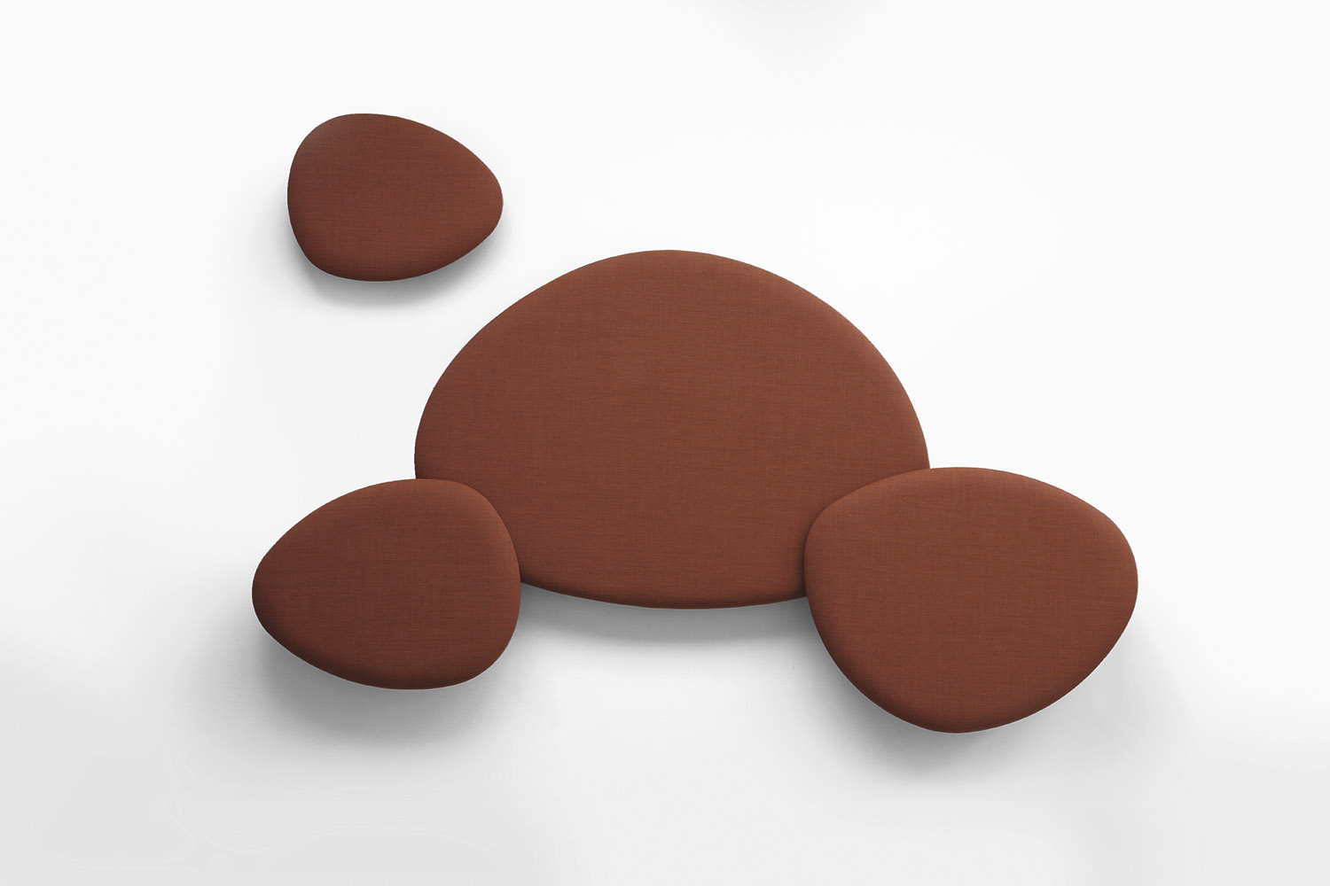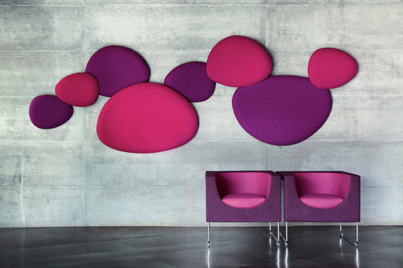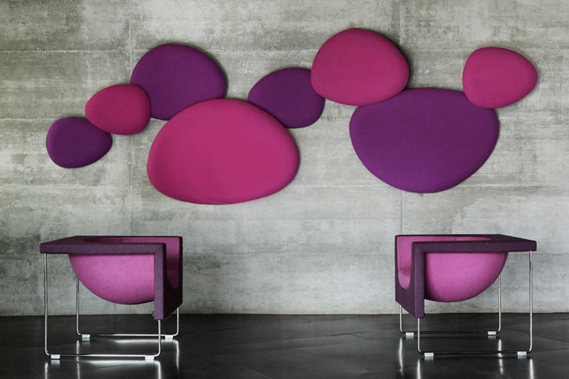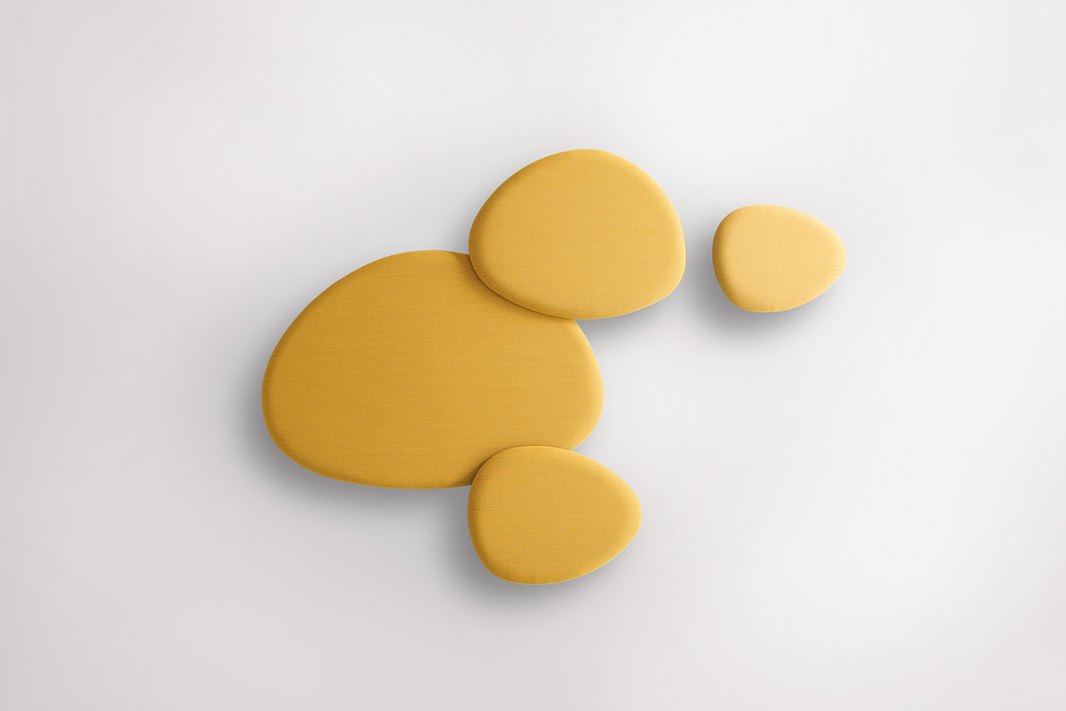 Satellite is a decorative acoustic panel system for the wall, created with the aim to absorb noise. Satellite panels have the same organic shapes as the Eclipse tables, coming in four different sizes and shapes. Satellite panels are fixed to the wall at two dif- ferent depths, in order to play with the shapes and conceal them under each other. This allows fur- ther creativity when arranging the panel’s configuration on the wall. The acoustic panels are made with noise-reduction foam cladded onto a wooden board and covered with fabrics from the STUA col- lection. Satellite panels help to absorb sounds and reduce noise in a room. The combination of panels and shapes allows interior designers great freedom to create numerous configurations. And there are even more possibilities with the wide range of materials and colors, from soft to flashy. The Satellite panels come with an easy suspension system that also allows the panels to rotate once fixed. This makes it easier to cre- ate interesting configurations. The Satellite panels are sold in sets of 4 units, one of each size: Small, Medium, Large & Extra Large in the same fabric.