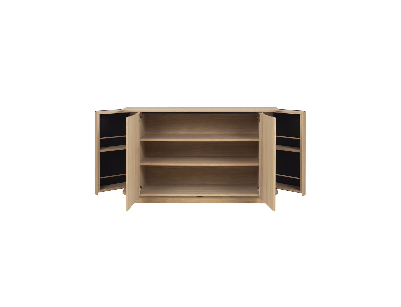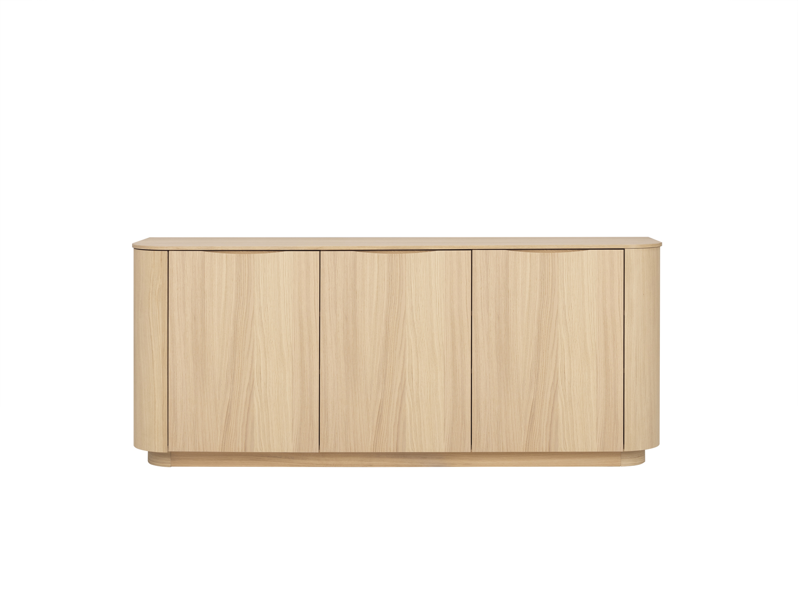 The Collum sideboards, highboards and display cabinets represent a comprehensive range of cabinets in a soft organic design. All cabinets have a drinks/storage compartment on both sides with curved wooden doors fitted with a magnetic catch. The plinth of the cabinets has adjustable feet. All doors and drawers have soft-closing and the glass doors with push-release. The glass cabinets can be ordered with LED lights with sensor and dimmer.