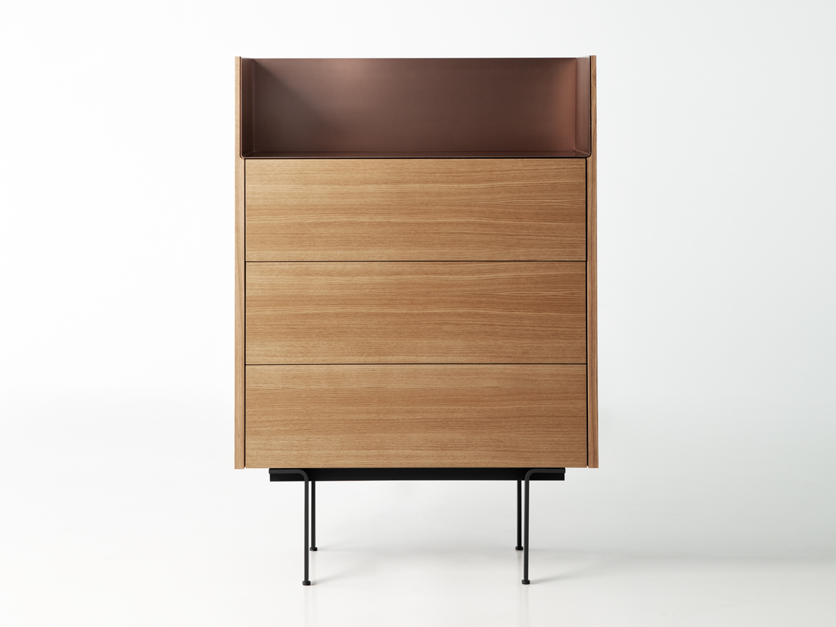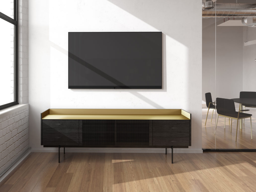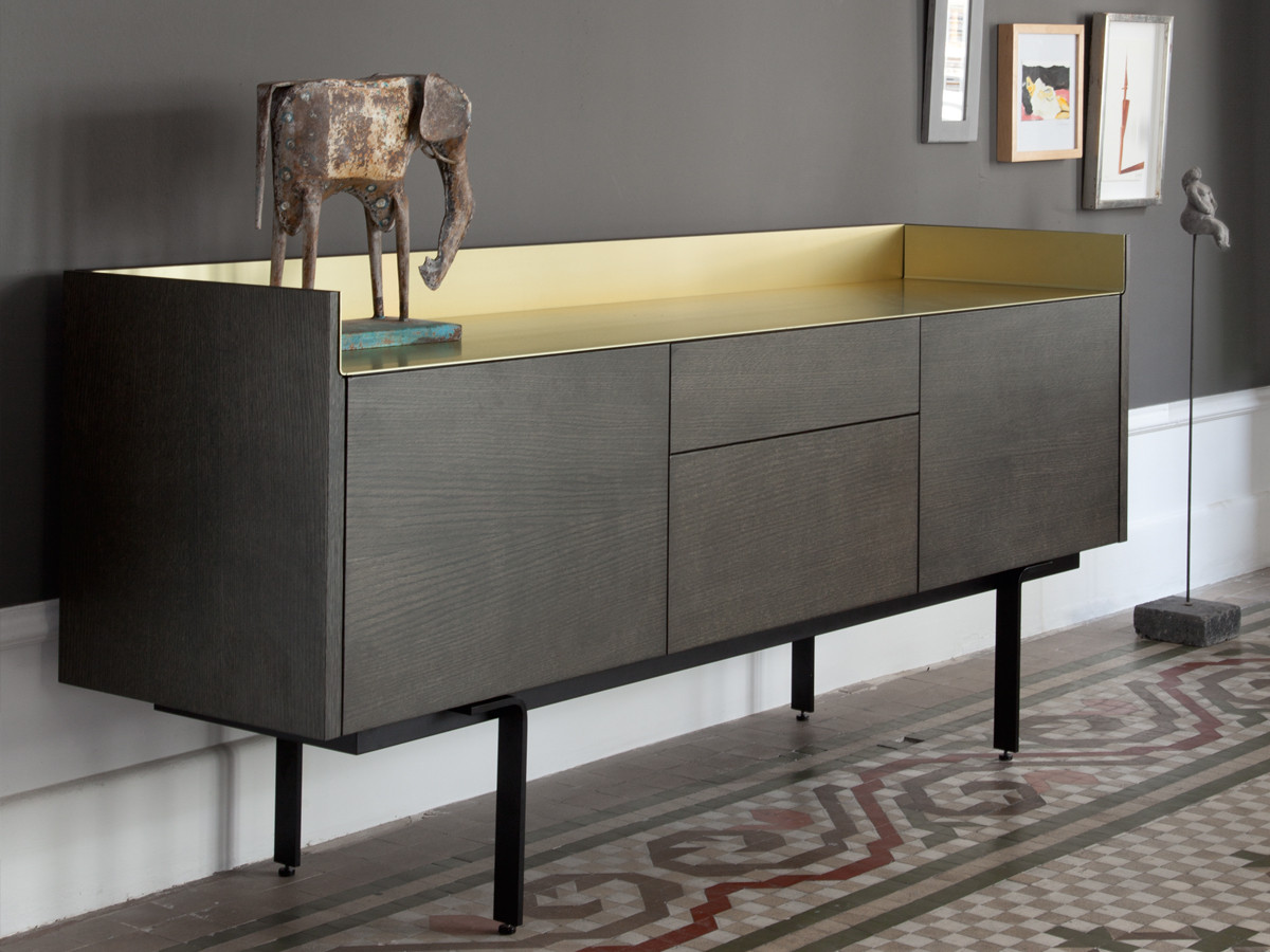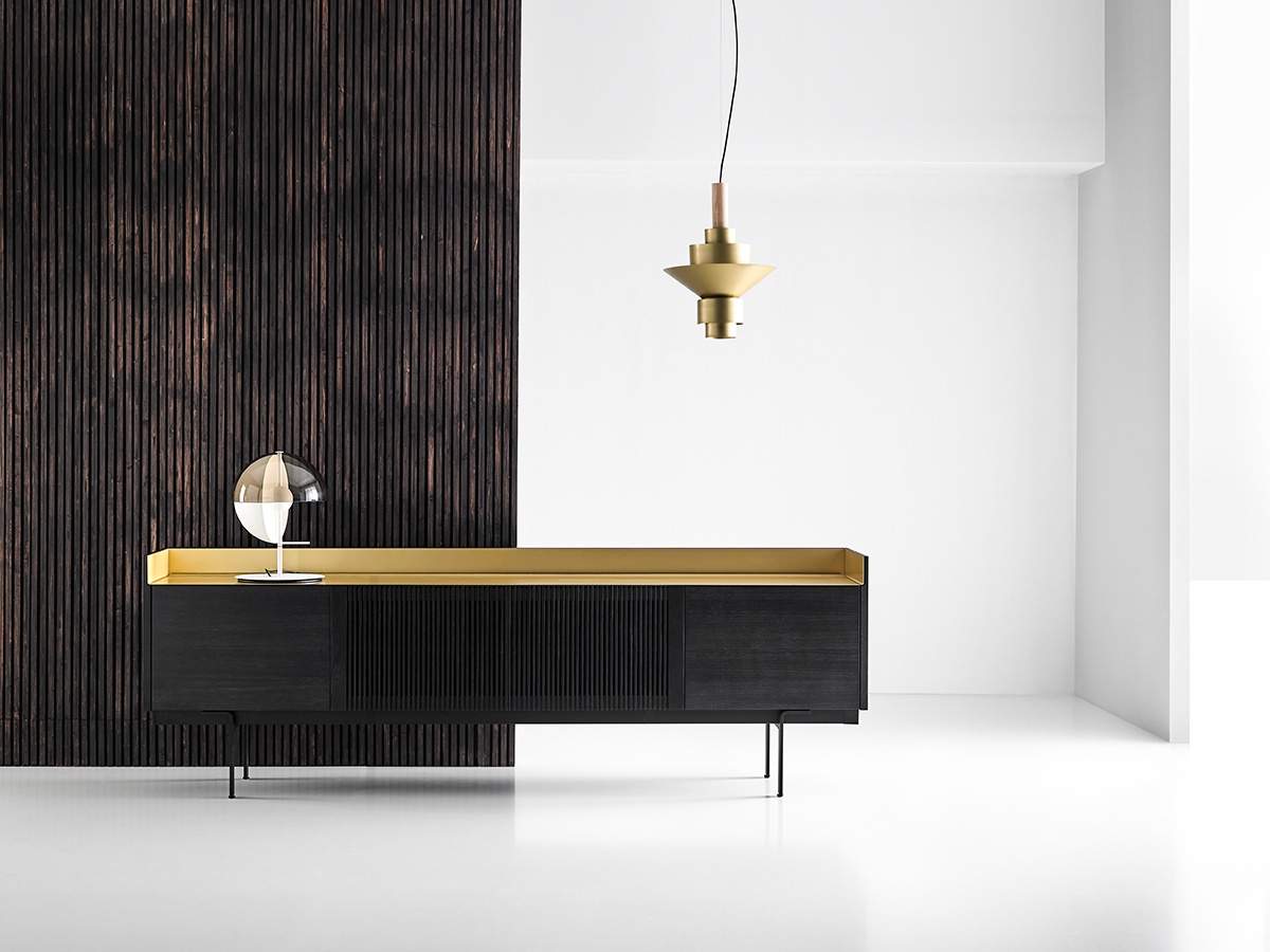 A collection of sideboards, chests of drawers and TV benches, winner of the Red Dot 2015 Award, with a singular aluminium finish on the top surface.