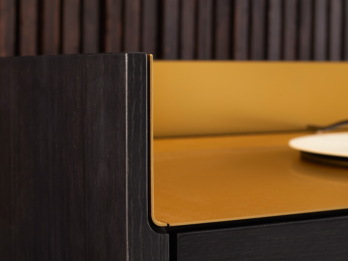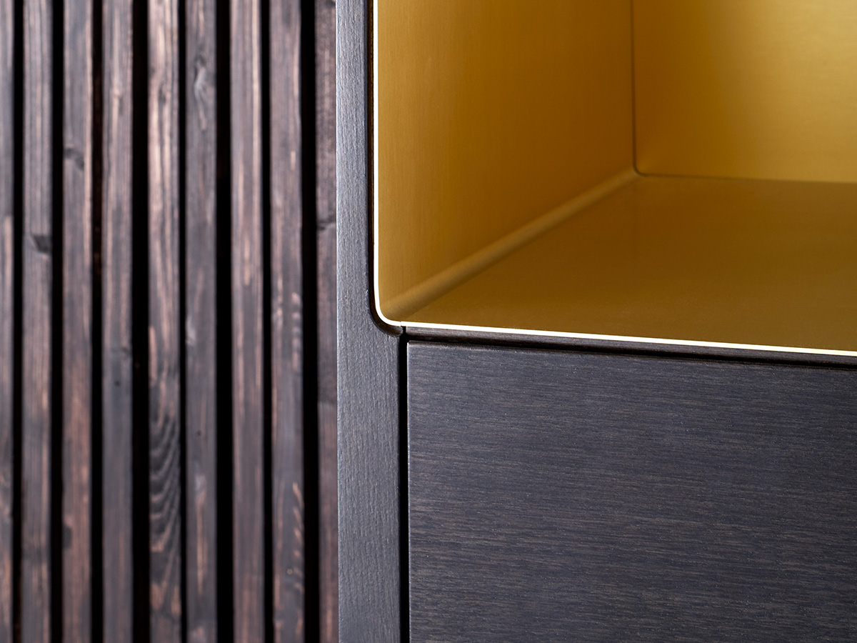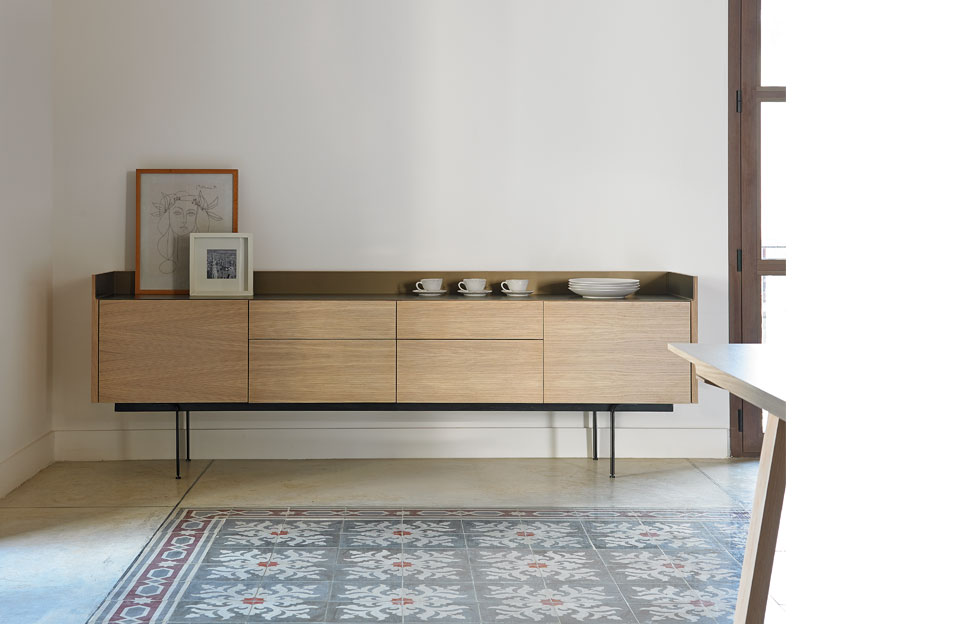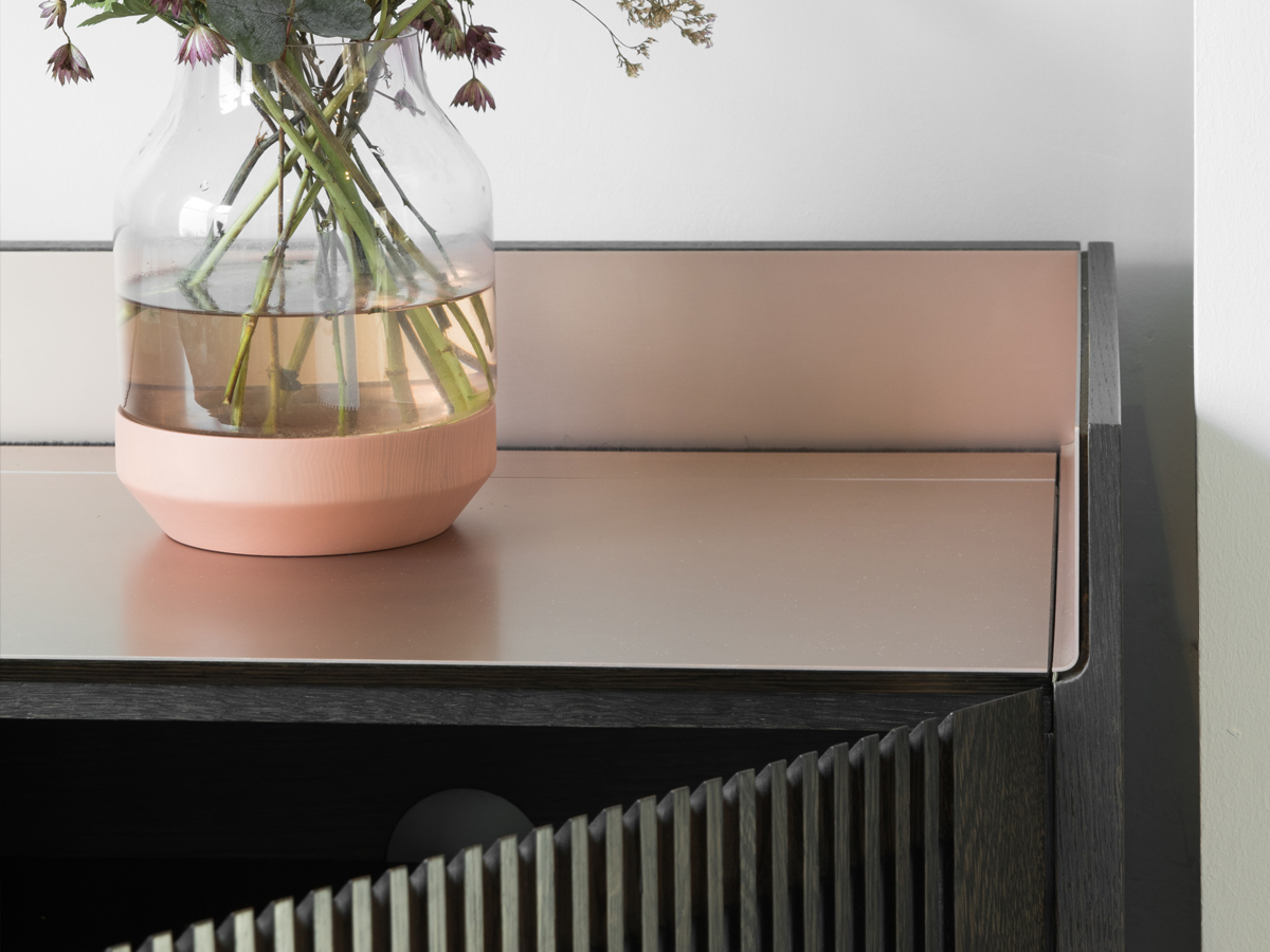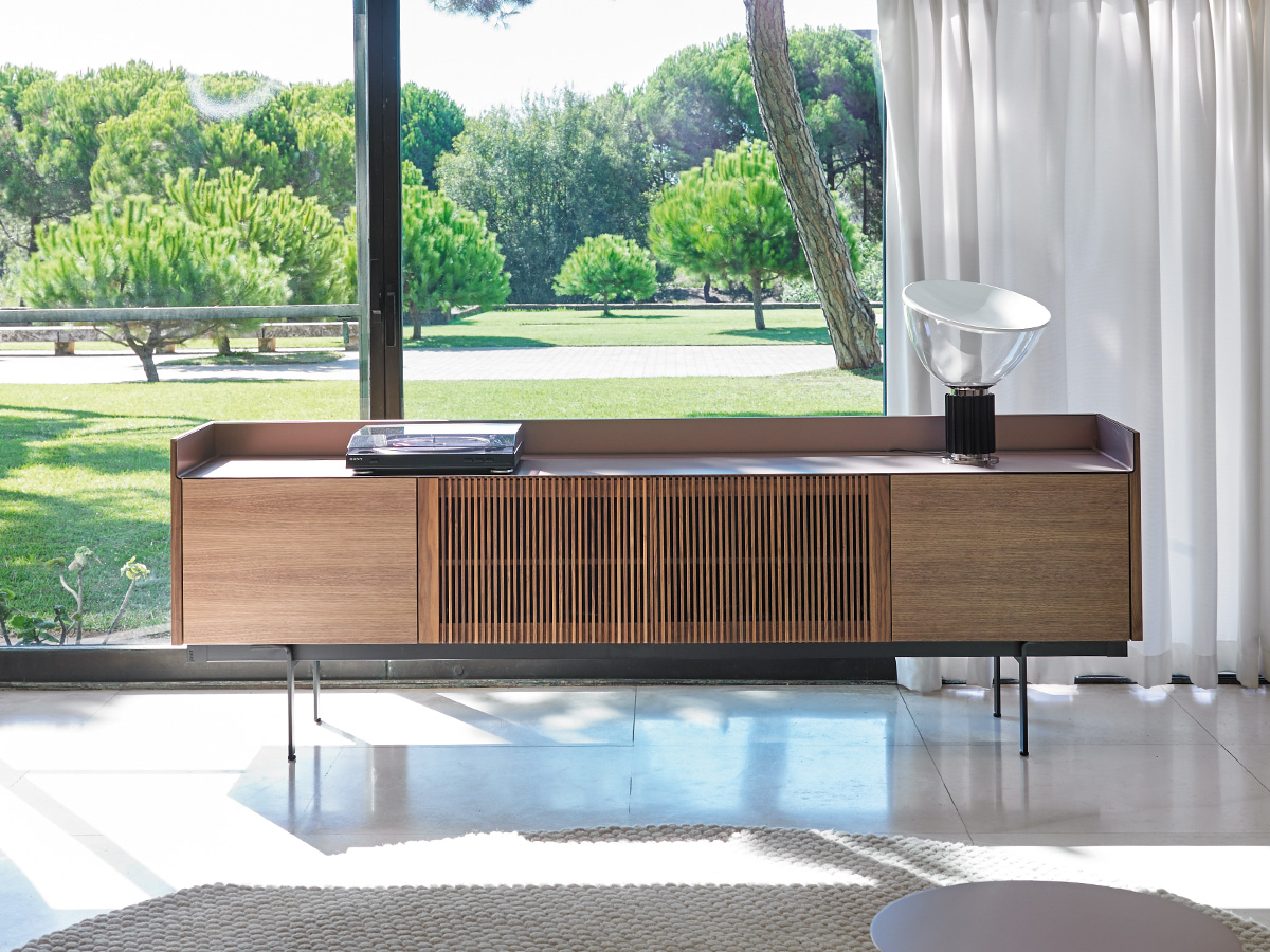 A collection of sideboards, chests of drawers and TV benches, winner of the Red Dot 2015 Award, with a singular aluminium finish on the top surface.
