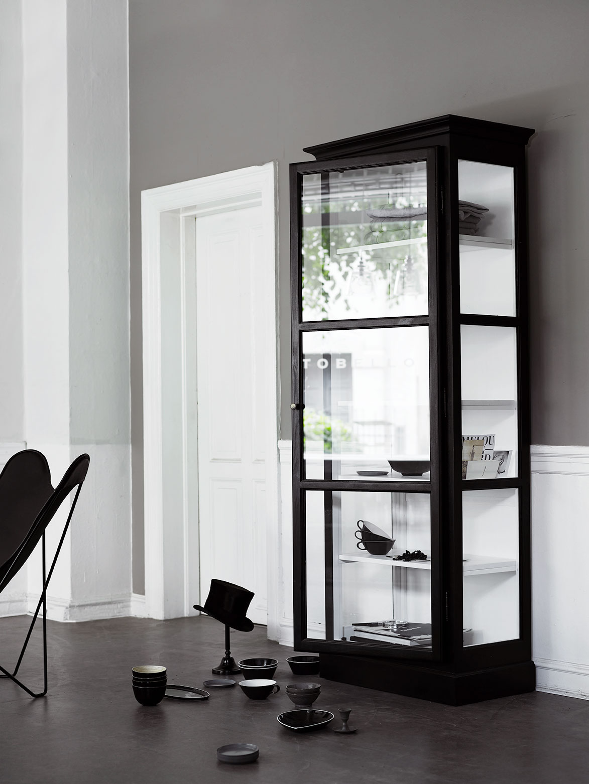The V-Series is Lindebjerg Design’s classic line. Notice the details in the molding of the wood and the white varnish on the inside, which brings out the beauty in each object you place on the shelves. An elegant, timeless example of Nordic design.