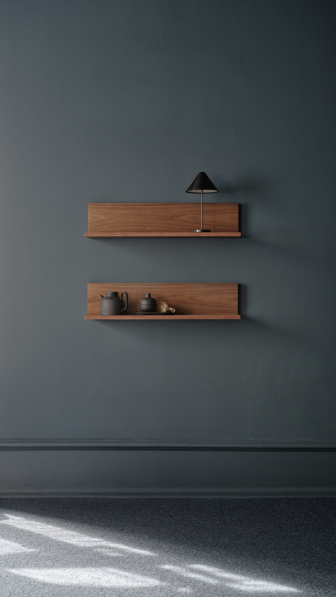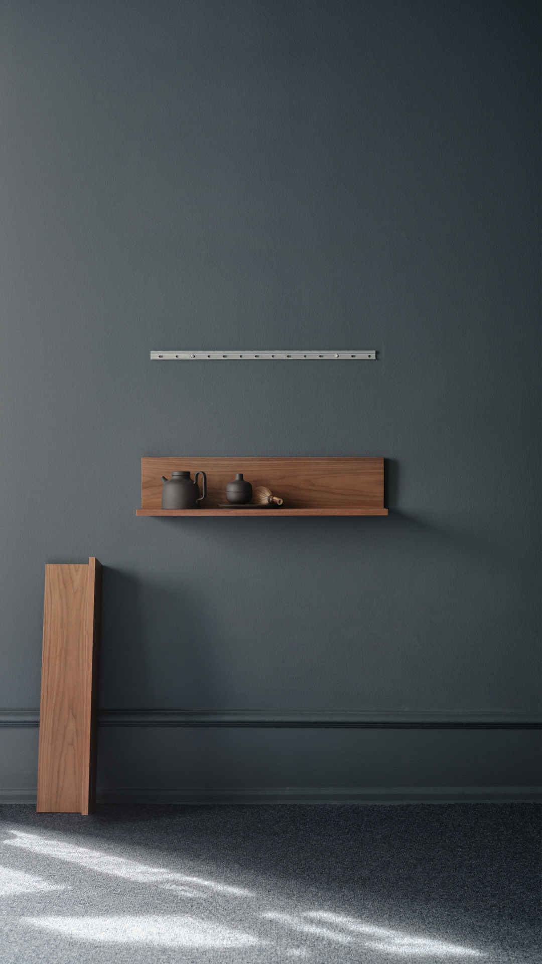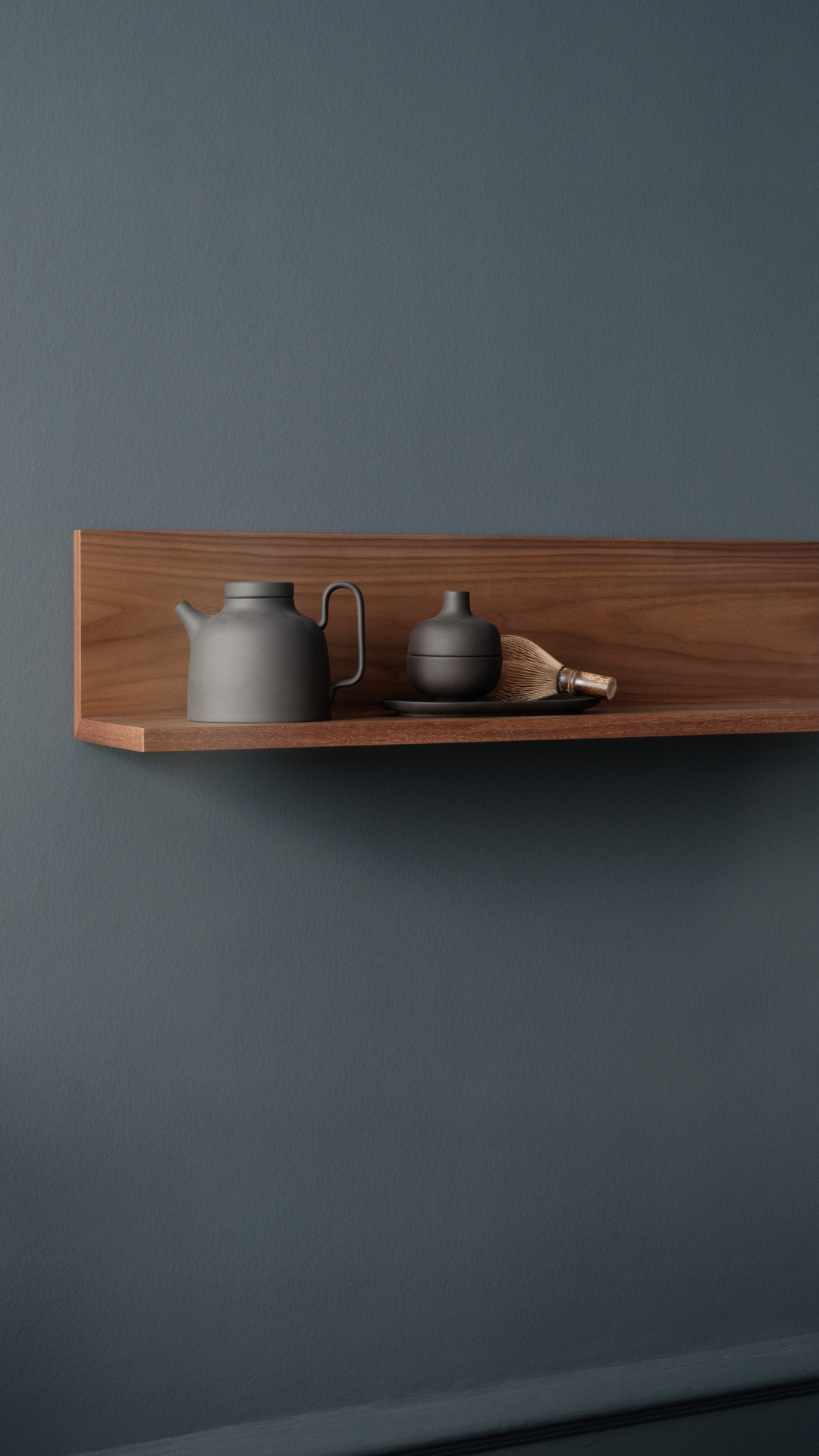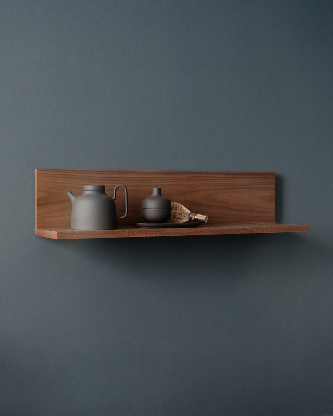 Tana is a series of wall-mounted furniture pieces that consist in their cornerstone of surfaces in wood that find each other in an effordless encounter. The horizontal surface creates a ledge for objects, while its vertical surface frames and forms a calm, coherent background for what you place on the furniture.