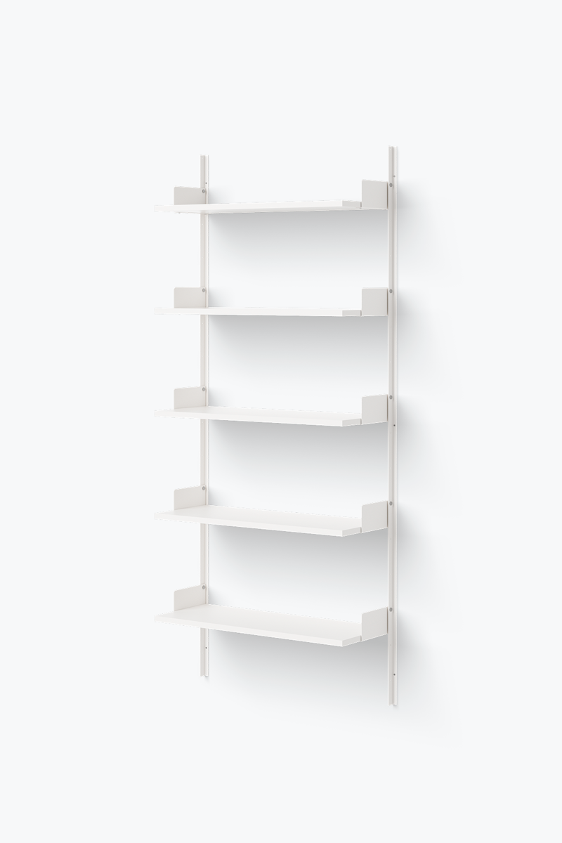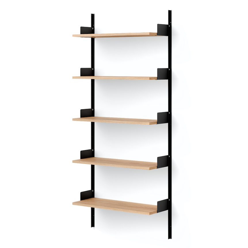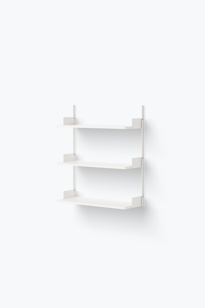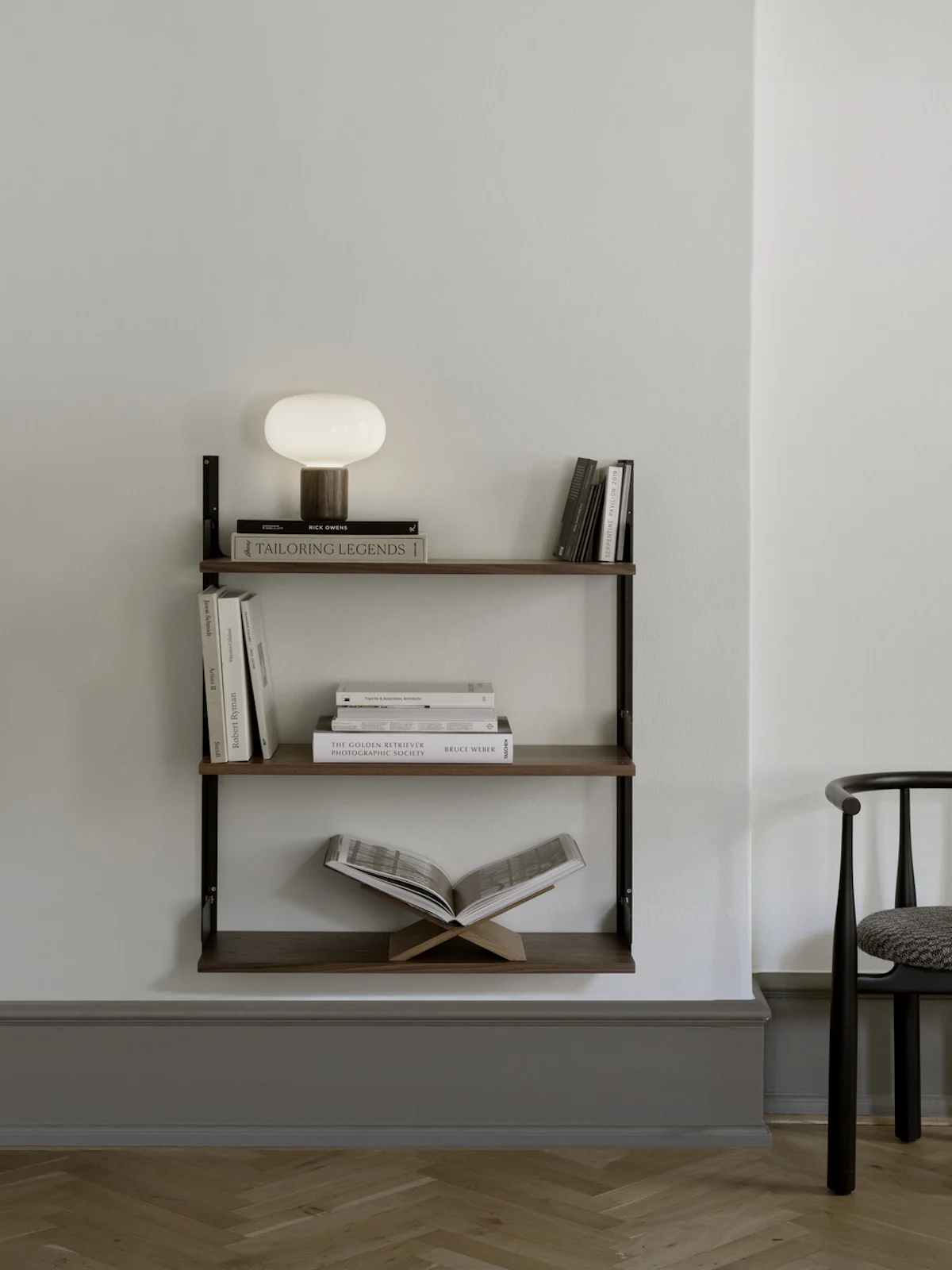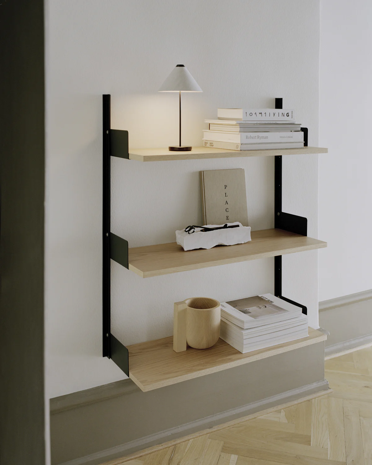 Sometimes the simplest pieces prove to be the most difficult to find, say, the quintessential wall shelf. With understated details and intelligible flexibility, the New Works shelving system aims to be just that. Designed to effortlessly blend into a variety of spaces, this simple shelving system continues New Works’ ongoing quest of creating elevated basics. Nothing is surplus and everything has been carefully attended to, like the angular profiles of the wall bars and the integrated bookends that keep your belongings in place. The shelves are neatly assembled with flat knurled screws in stainless steel, adding an honest yet refined detail to the design. A system that is meant to grow - in your home and in range – to accommodate various storage needs.