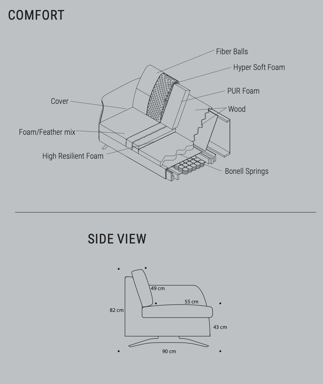 The Glow Sofa is designed with the ultimate comfort in mind. Glow is produced with the assumption that it will get plenty of use. The exclusive foam top gives the seat exceptional comfort and ensures it will stay in shape for years and years. The thick and highly resilient foam seat cushions, wrapped in a soft cover of seabird feathers, gives the Glow sofa a superior comfort.