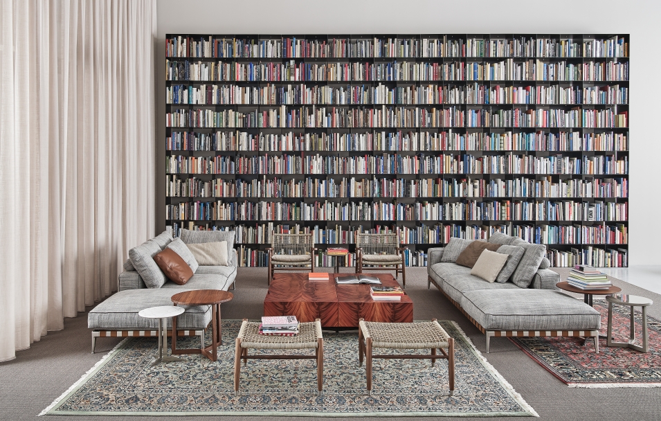 The Gregory seating system further expands its modular options through a series of new pieces, distinguished by their impressive size, that can be assembled into generously proportioned arrangements designed to offer a superior level of comfort and are sure to play a starring role in the living room.