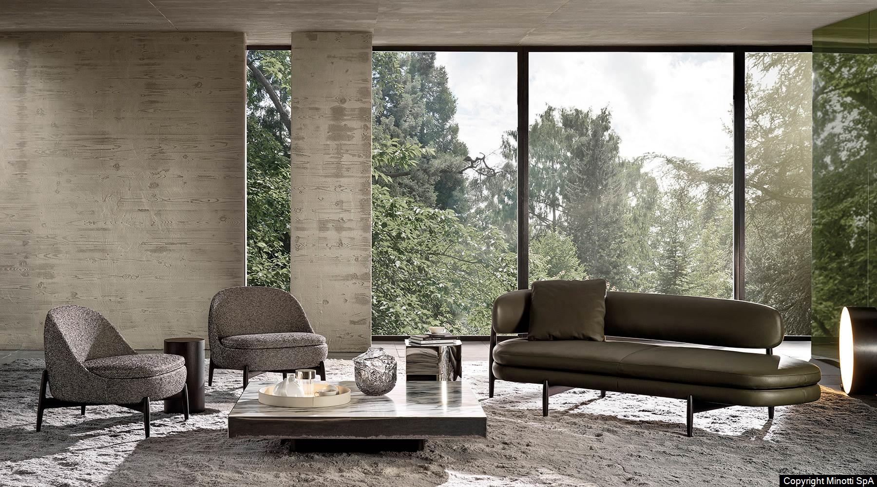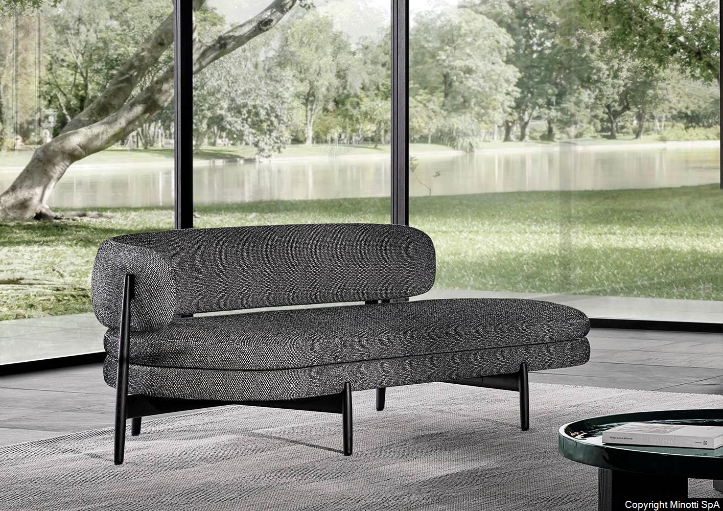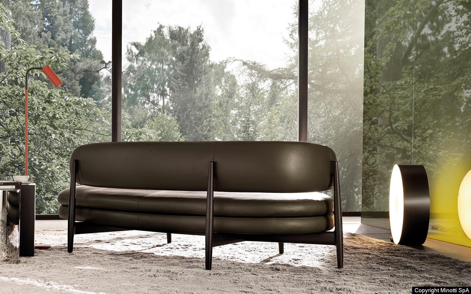 A Danish name for a line with a clearly Japanese-inspired design: this contradiction brings to life the harmonious shapes of the Lars sofa, designed by Japanese-Scandinavian duo Inoda+Sveje. A soft, asymmetrical, continuous, organic curve resting on five slender legs in solid ash wood with an open-pore Liquorice stained lacquer or in Canaletto walnut with a Light Brown stain. The architecture of this object, raised off the ground, rises above the seat to support and frame the backrest, lending an aerial elegance to this sofa proposed by Minotti for both residential and hospitality projects. The solid wood frame is enhanced by details that embellish the joints and highlight the complex cabinet-making process behind its apparently simple lines. The balance between the vertical wooden profiles and the softness of the edgeless forms, characterised by a seat upholstered in high-density polyurethane, translate the synthesis between Danish design and Zen harmony. The frame and cushions have fully removable covers in both fabric and leather versions.