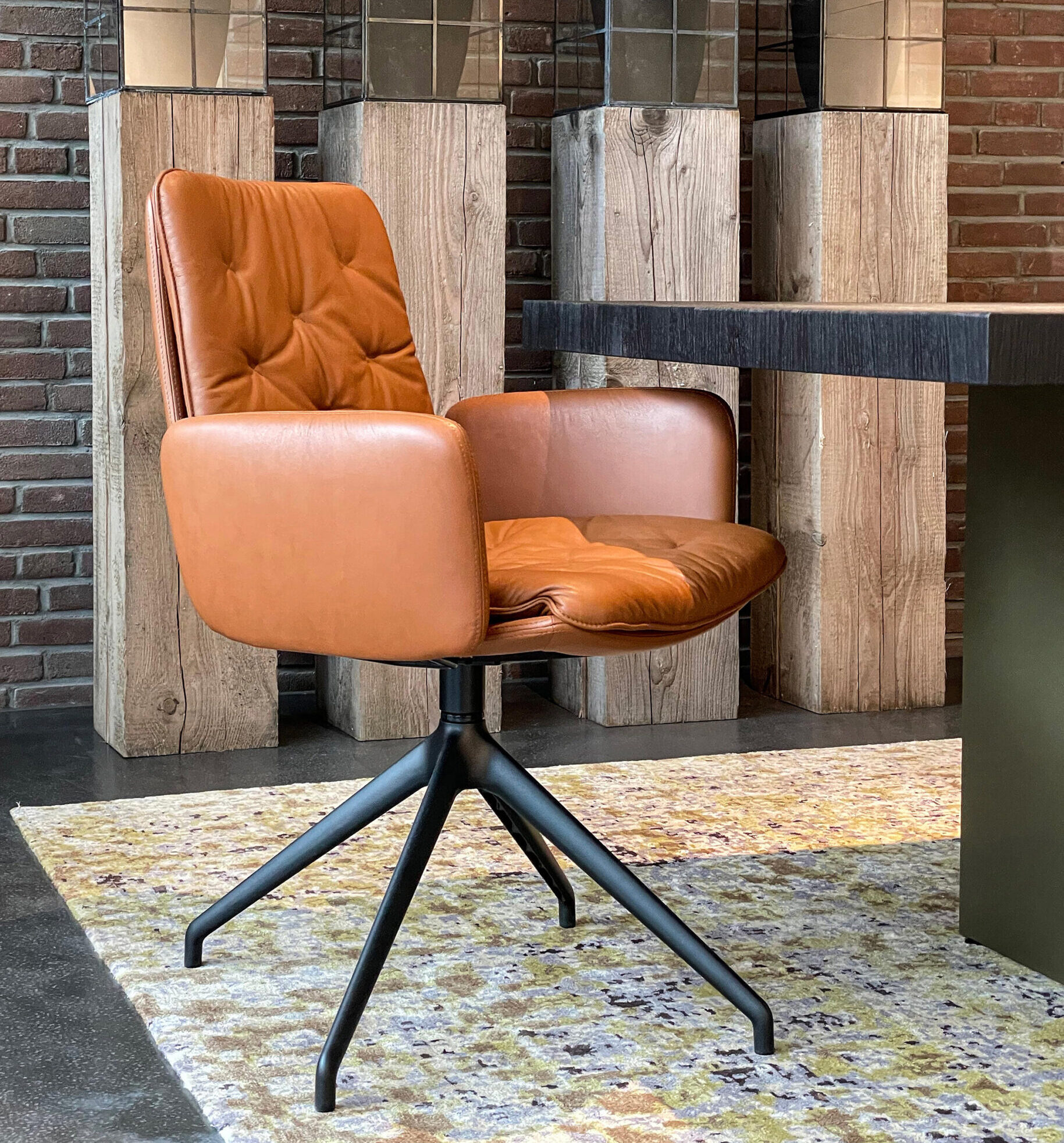 This cosy chair welcomes everyone. ARVA STITCH, a perfect combination of timelessly beautiful design from the Mid-Century with high, long-lasting seating comfort. Its plywood shell, covered in high-quality leather or textile, takes up the softly upholstered cushion with its stylish cross-stitching in a form-fit manner. An open or upholstered armrest gives this beautifully shaped chair the look and feel of a small armchair. It is figurative and light without armrests. The ARVA STITCH - graceful and extraordinary.