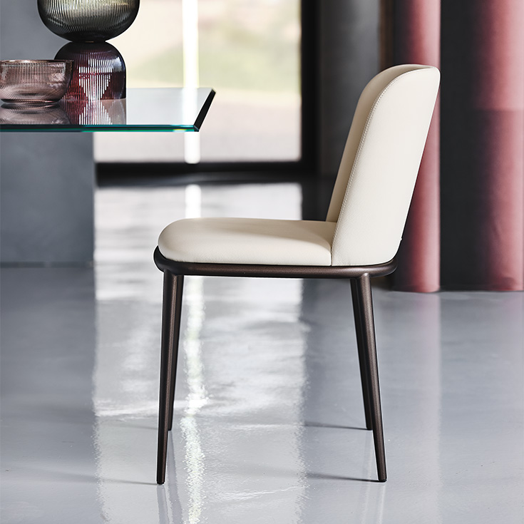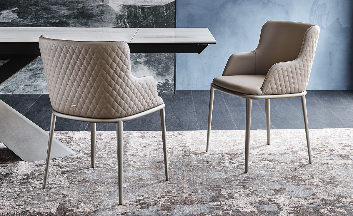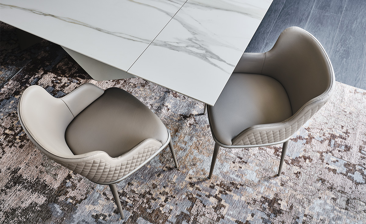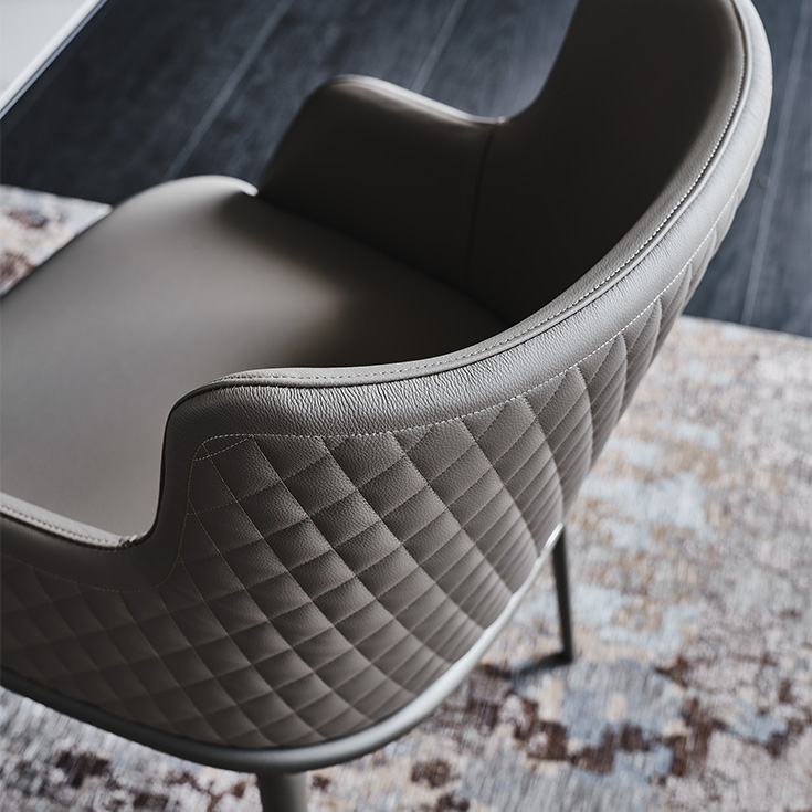 Comfort and refinement are at the heart of Magda, the exclusive family of elegant padded chairs. The enveloping backrest, the structure made of high-quality solid wood, and the wide range of coverings give rise to multiple stylistic combinations. The extensive range covers modern dining room chairs, elegant leather chairs and armchairs, design kitchen stools, and includes the Magda ML version, with a wider seat, and the Magda Couture version. The latter is enhanced by a glam diamond-quilting on the backrest which makes it an exquisite design piece, suitable for a modern living room of both residential projects and contract interior design projects.