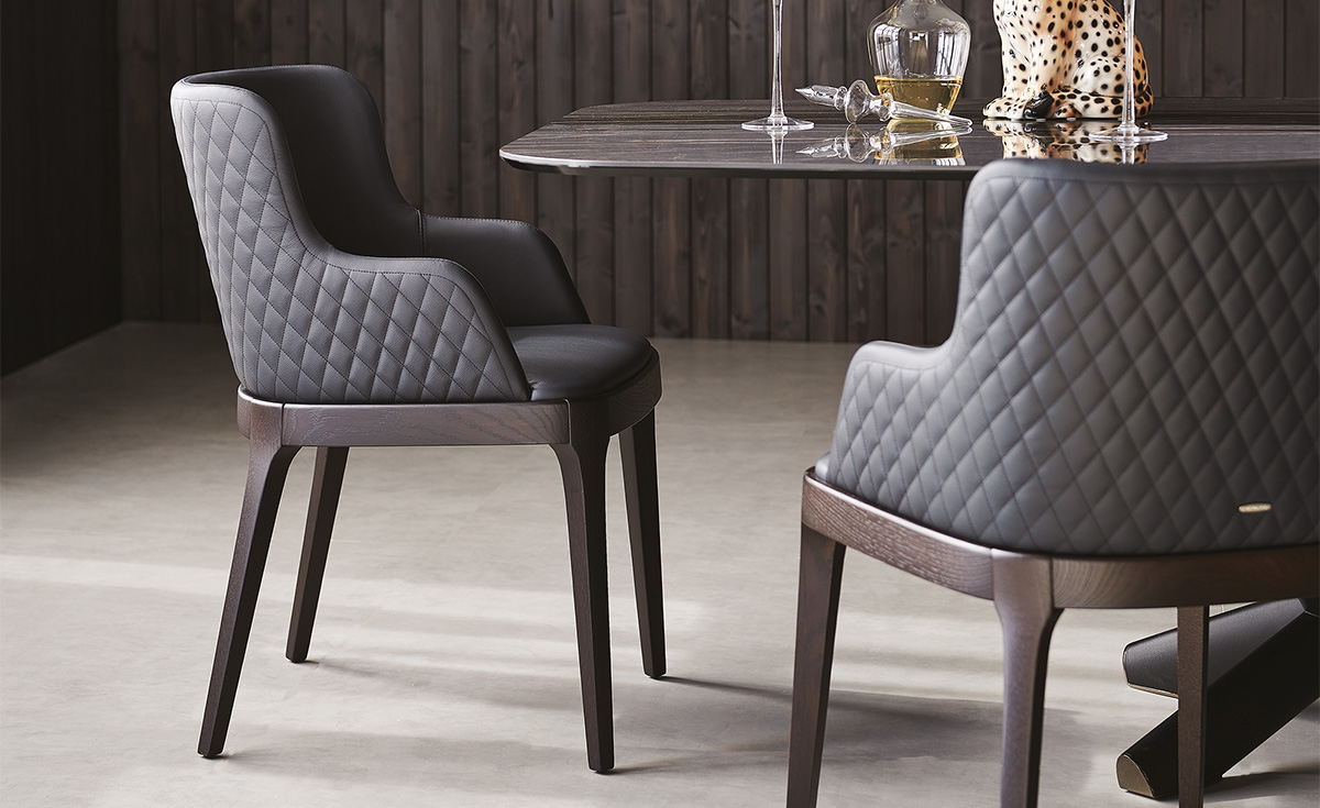 Comfort and refinement are at the heart of Magda, the exclusive family of elegant padded chairs. The enveloping backrest, the structure made of high-quality solid wood, and the wide range of coverings give rise to multiple stylistic combinations. The extensive range covers modern dining room chairs, elegant leather chairs and armchairs, design kitchen stools, and includes the Magda ML version, with a wider seat, and the Magda Couture version. The latter is enhanced by a glam diamond-quilting on the backrest which makes it an exquisite design piece, suitable for a modern living room of both residential projects and contract interior design projects.