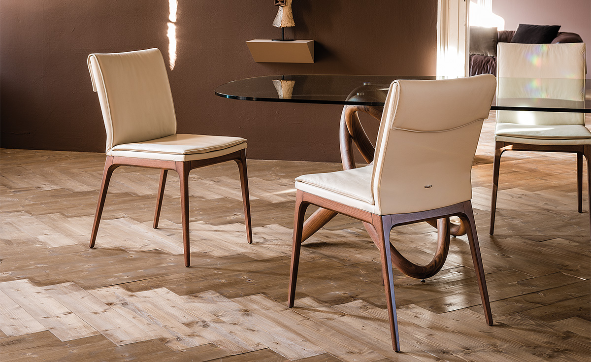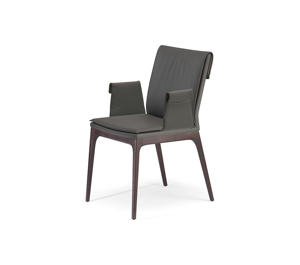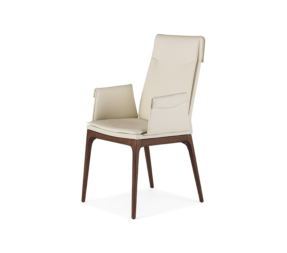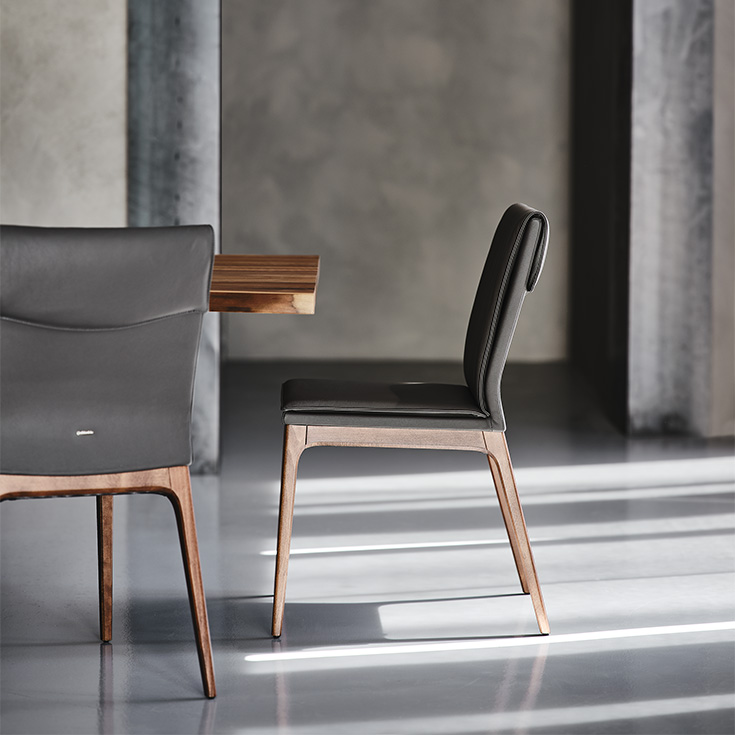 In a continuous dialogue between the recent past and the near future, Sofia, designed by Paolo Cattelan, excels in the category of elegant upholstered chairs with a timeless design. The ergonomics and comfort of the covered cushions are additional features which, combined with the discreet aesthetics of the wooden base, make this modern designer chair the perfect solution for the living room. The watchword is comfort, the light cushion seems to gently veil the seat and envelope the backrest, also available in a high version. The large Sofia family also includes chairs with elegant armrests, as well as design and kitchen stools in two different heights, also perfect for contract interior design projects.