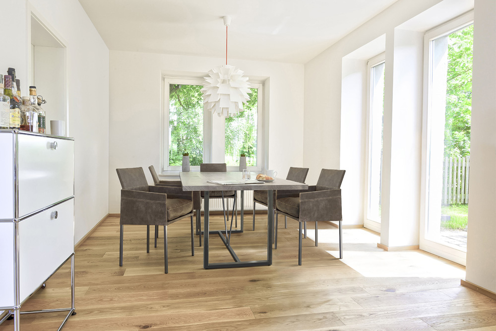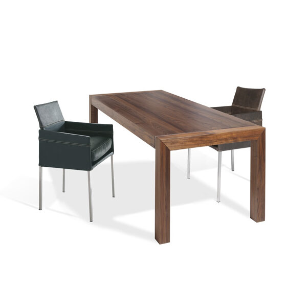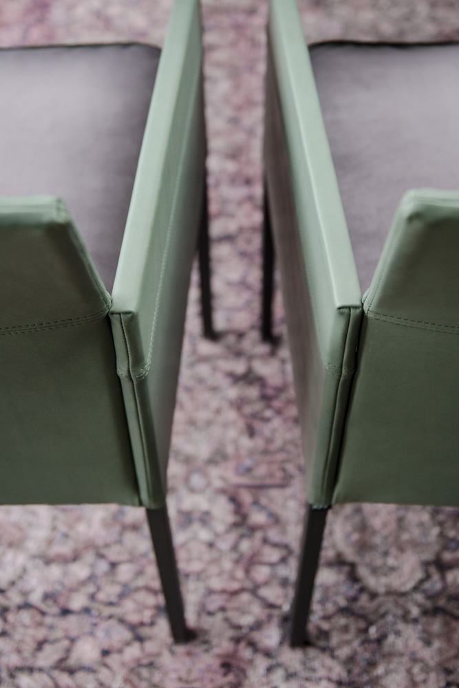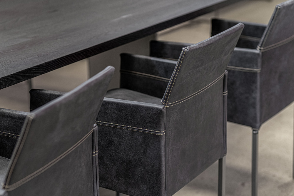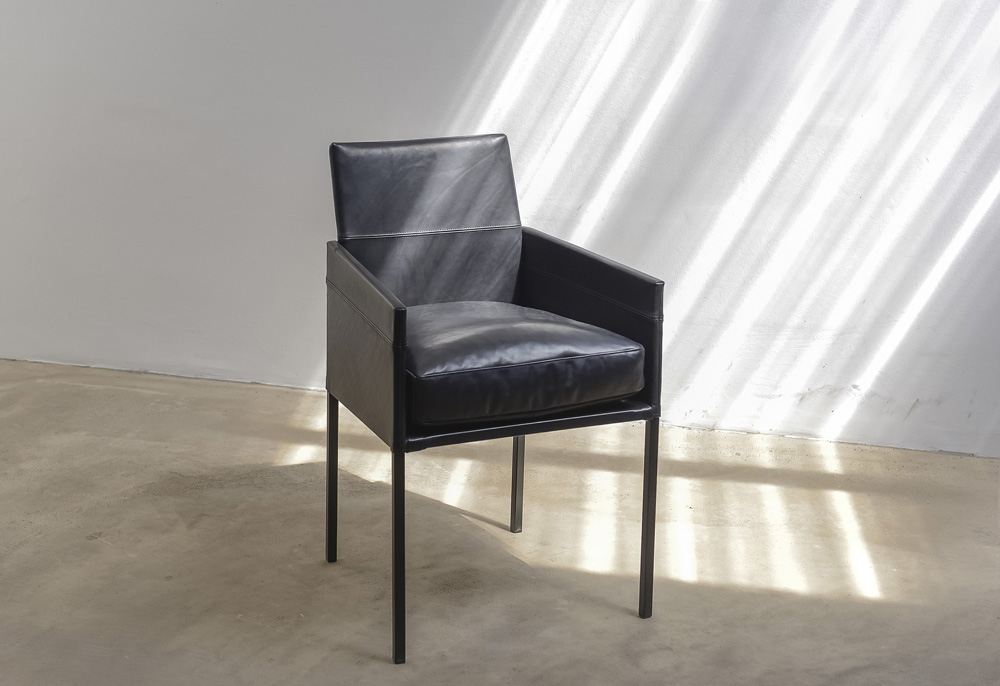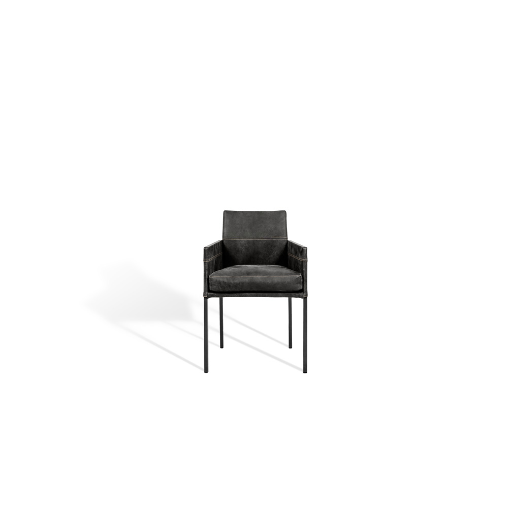 The linear form and the harmony of elegance, modernity and timelessness describe the design of this distinctive chair. The slightly inclined backrest and a foam-covered seat are covered with a cover of high-quality upholstery fabric or robust leather. The opulent flake cushion provides additional comfort. The TEXAS composition with elegant armrest is as graceful and cosy as a slim armchair. The TEXAS, a personal companion for the dining table at home or as classic seating furniture in exclusive gastronomy.