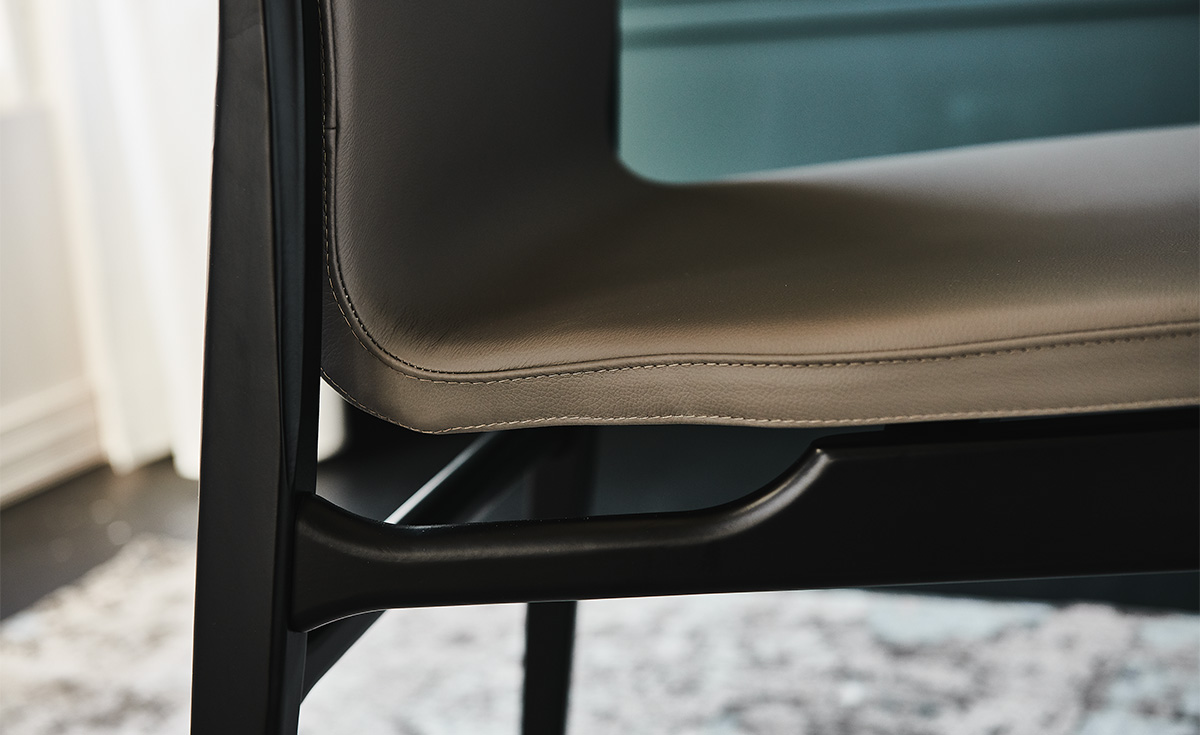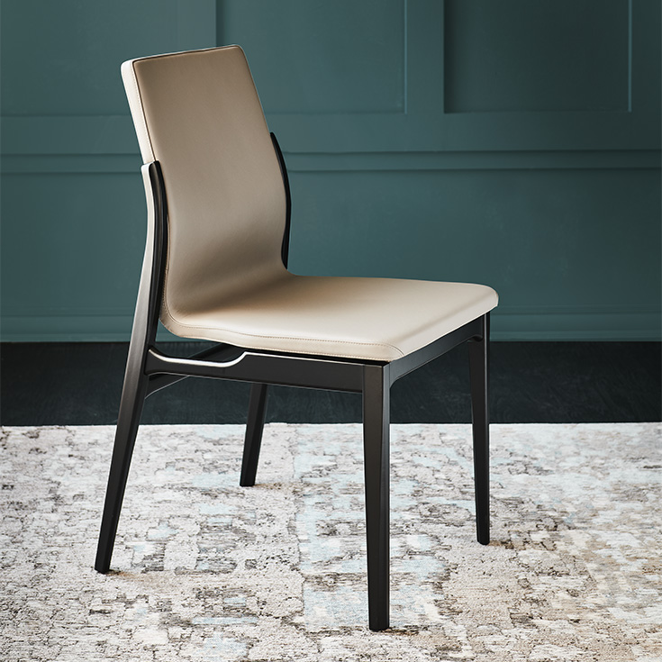 Designed to be comfortable and useful, the modern dining chair Ginevra is made with the same care that is devoted to timeless products. Ginevra has a sophisticated style: elegant simplicity - combined with the refined workmanship of the wooden base - makes it an essential component for the living room area, both for residential projects and design workspaces. The refined range of coverings, combined with the legs' finishes, gives rise to multiple styling combinations, allowing you to furnish your dining room with personality.