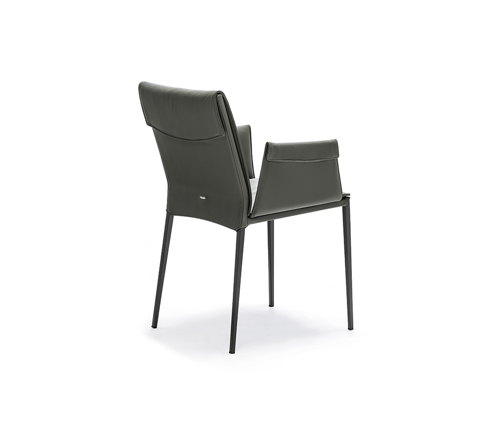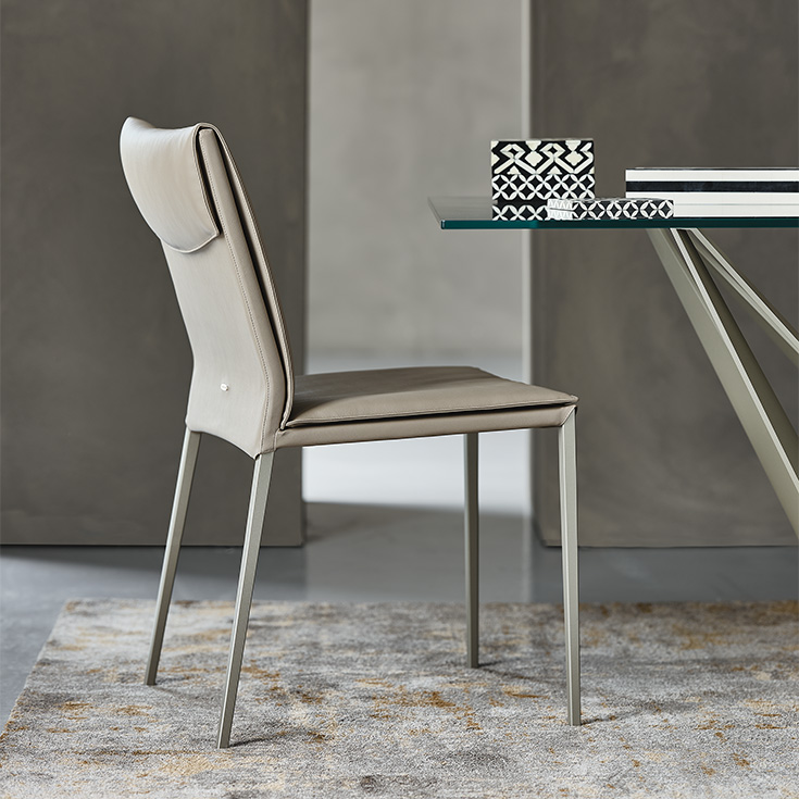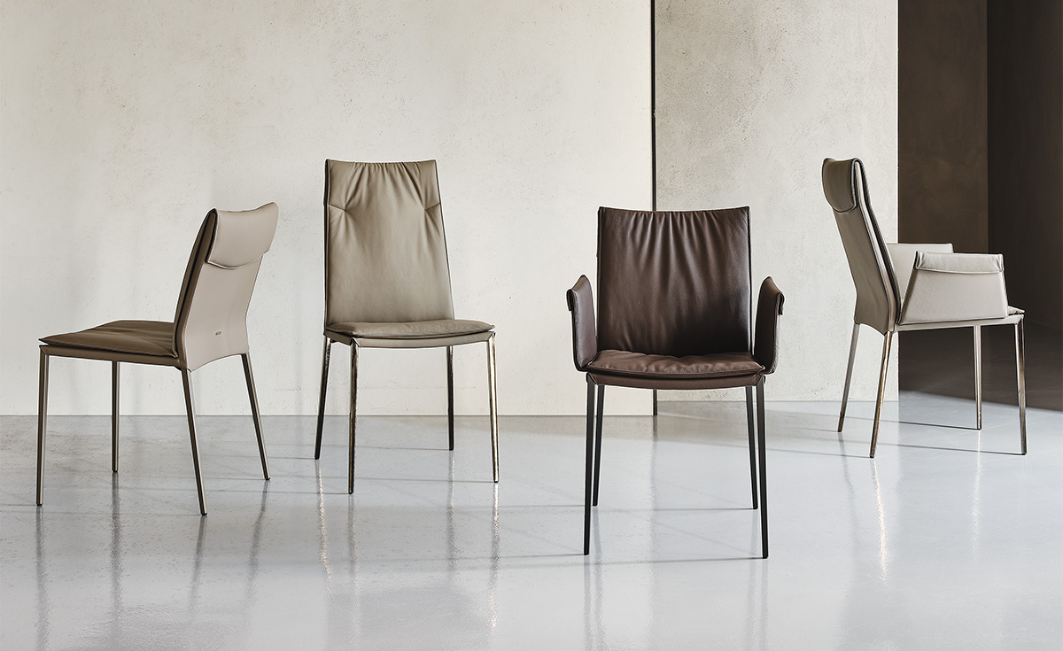 In an flowing dialogue between recent past and near future, the Isabel chair - conceived by Paolo Cattelan - stands out among the elegant padded chairs category that boast a timeless design. The ergonomics and comfort of the cushion, together with a descreet aesthetics, are the reasons why this modern design chair is the perfect solution for the living room area. The keyword is comfort, the light cushion seems to be gentely placed over the seat and to envelope the backrest, which is available also in the high version. The wide Isabel family also includes elegant chairs with armrest, as well as kitchen stools, that are ideal for workspace design projects. Both the chair and the stool are available in the Isabel ML version, with slender and elegant exposed steel legs.