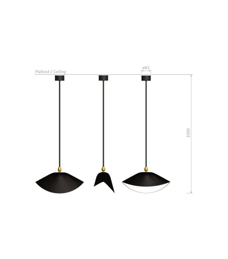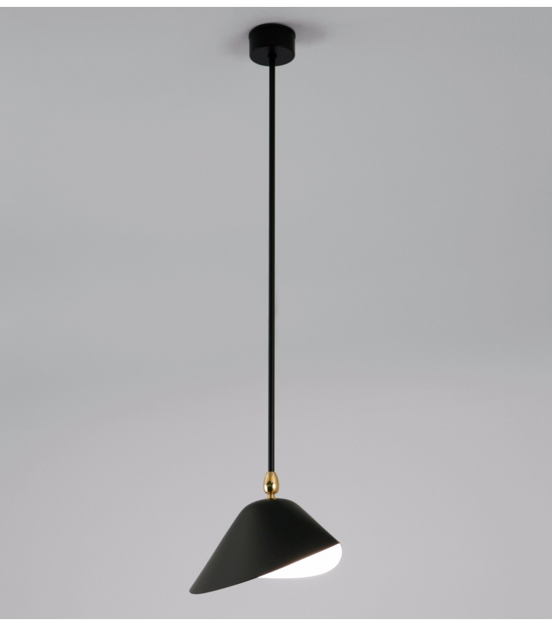 Ceiling Lamp Bibliothèque designed by Serge Mouille is a ceiling lamp, the original 1953 model reissue. It have reflector made of black lacquered aluminum with white interior, the joint of brass. Light bulb: E27 42W