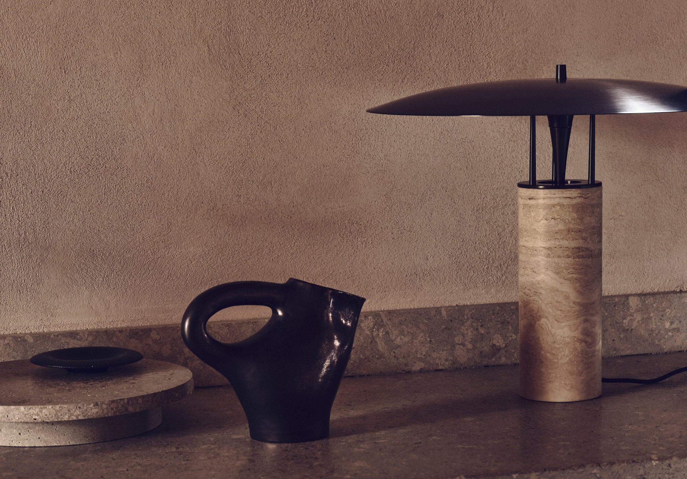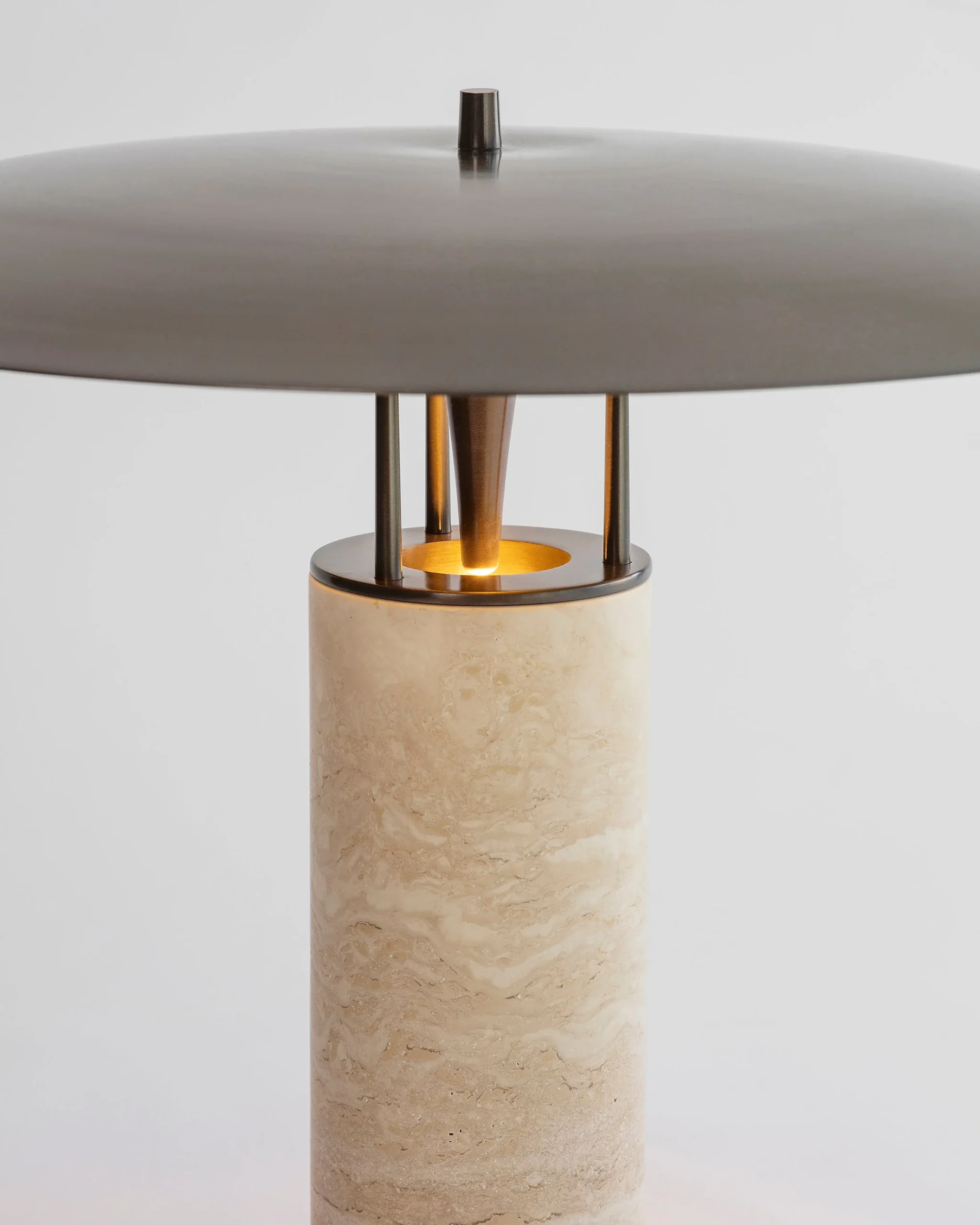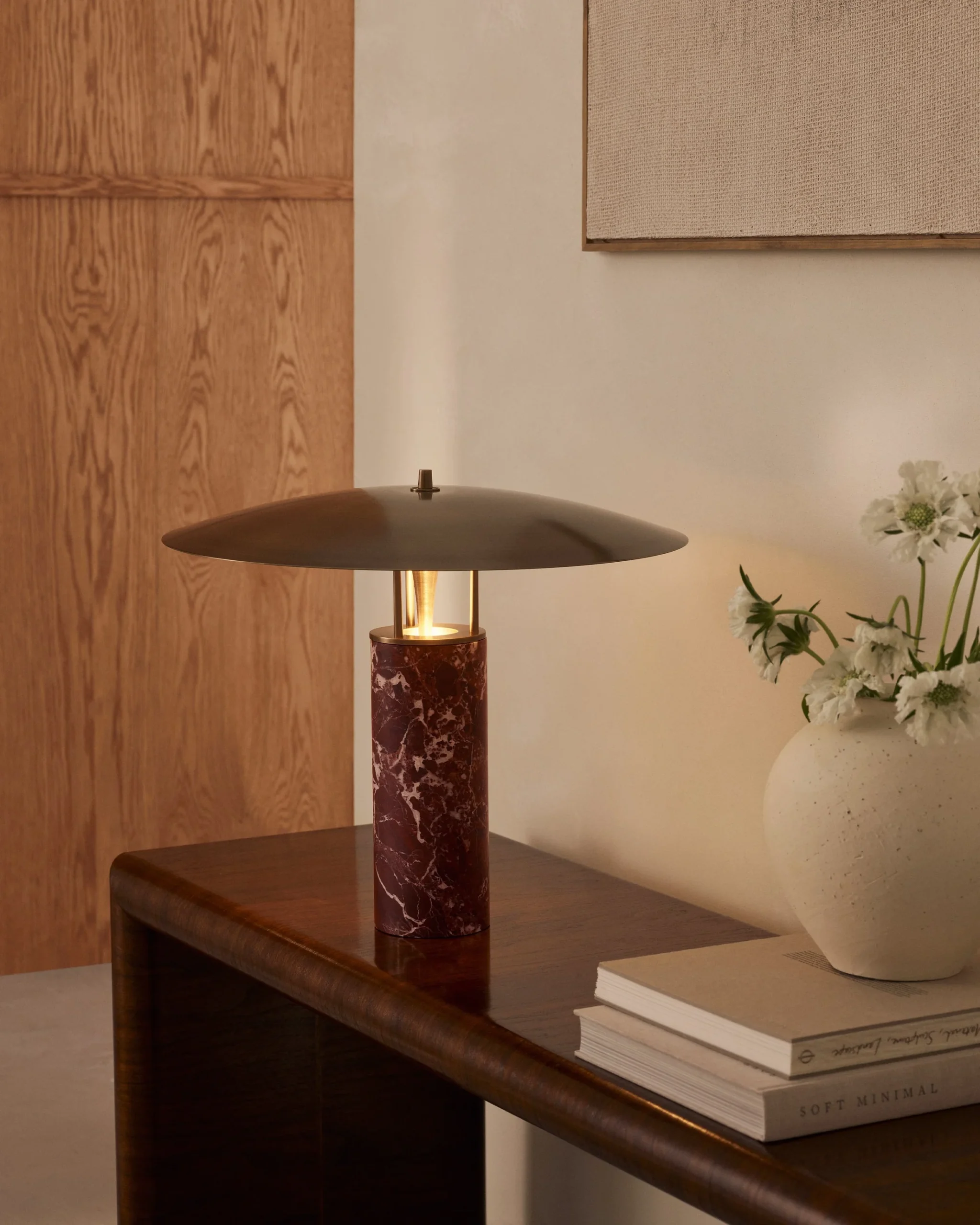 The perfect harmony of opulence and refinement, the Luna Table features a hand-spun brass shade and sculptural stone base, crafted to elevate any space.