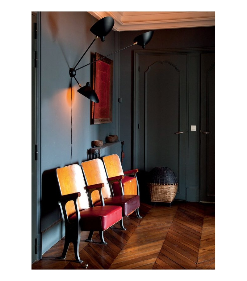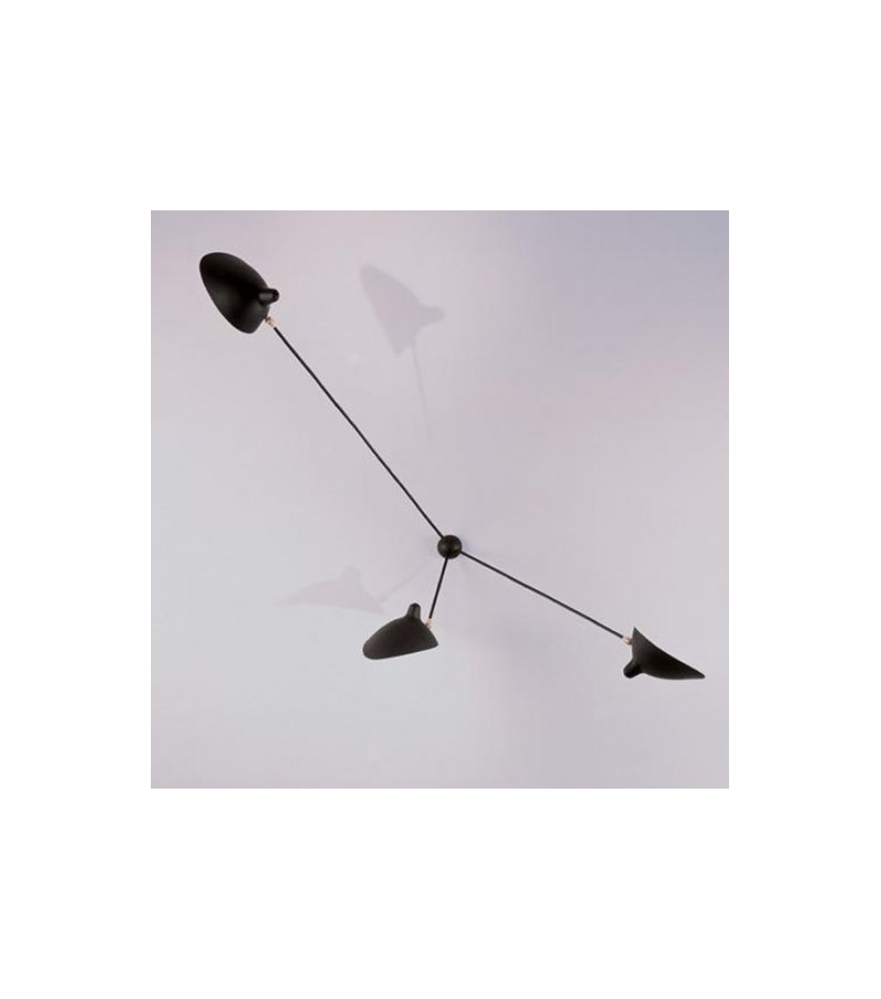 Sconce "Spider" 3 Still Arms designed by Serge Mouille is a wall lamp, the original 1955 model reissue. It have 3 rods steel painted black, the reflectors made of black lacquered aluminum with white interiors, the joints of brass. Light bulbs: E27 3x42W