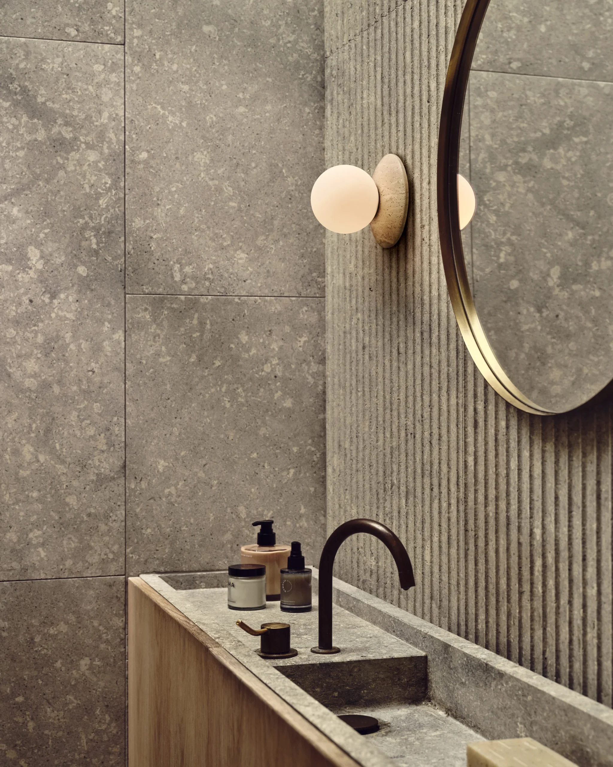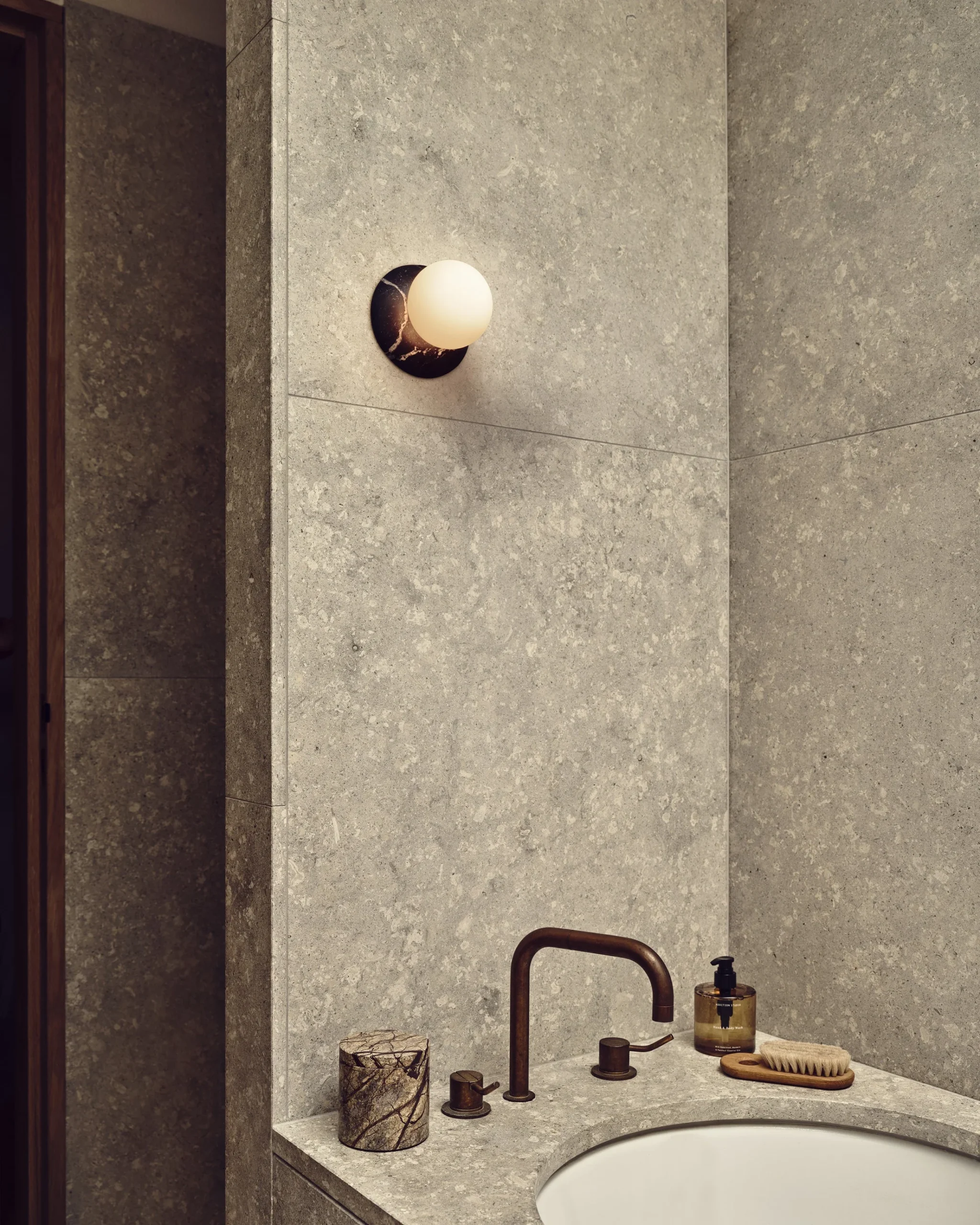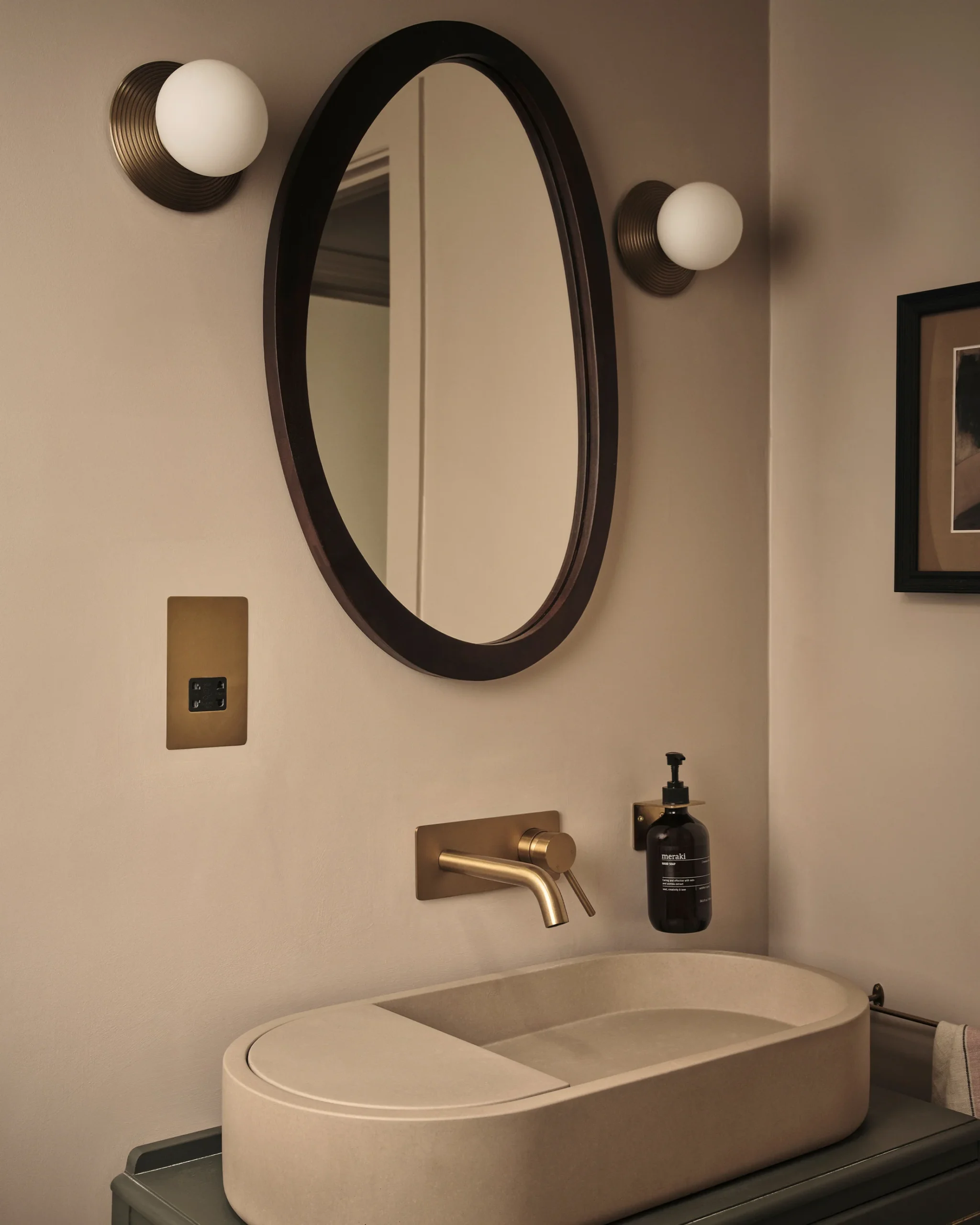 Graceful and sculptural, the Orbit Wall Light serves as a striking solo feature or in creative multiples. IP44-rated for bathrooms, it’s offered with a choice of elegant backplates.