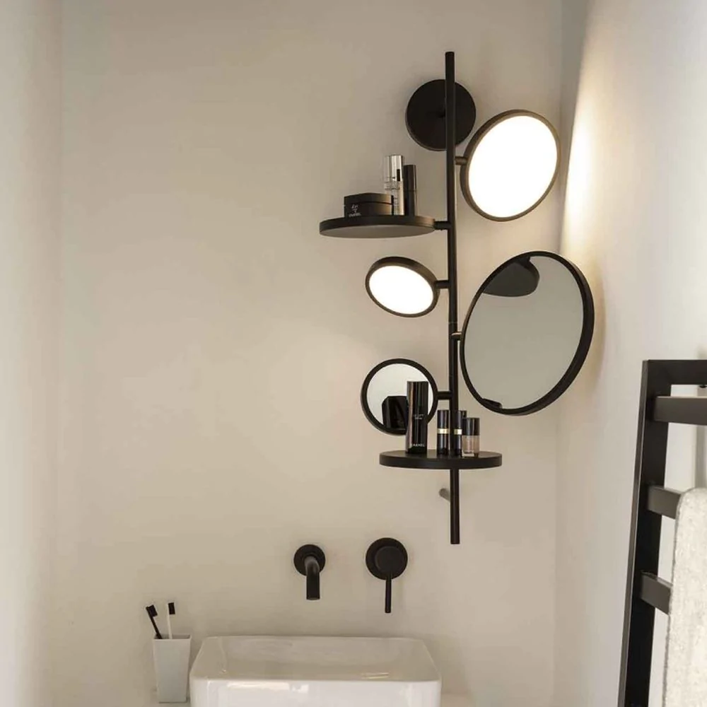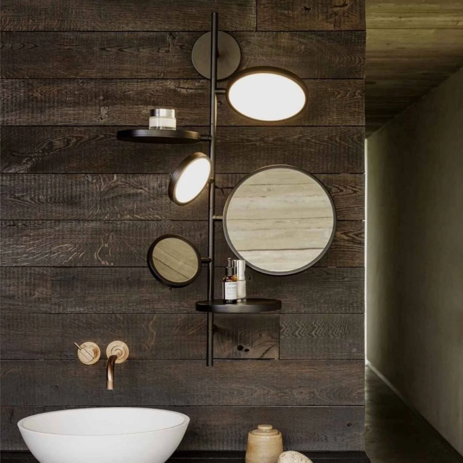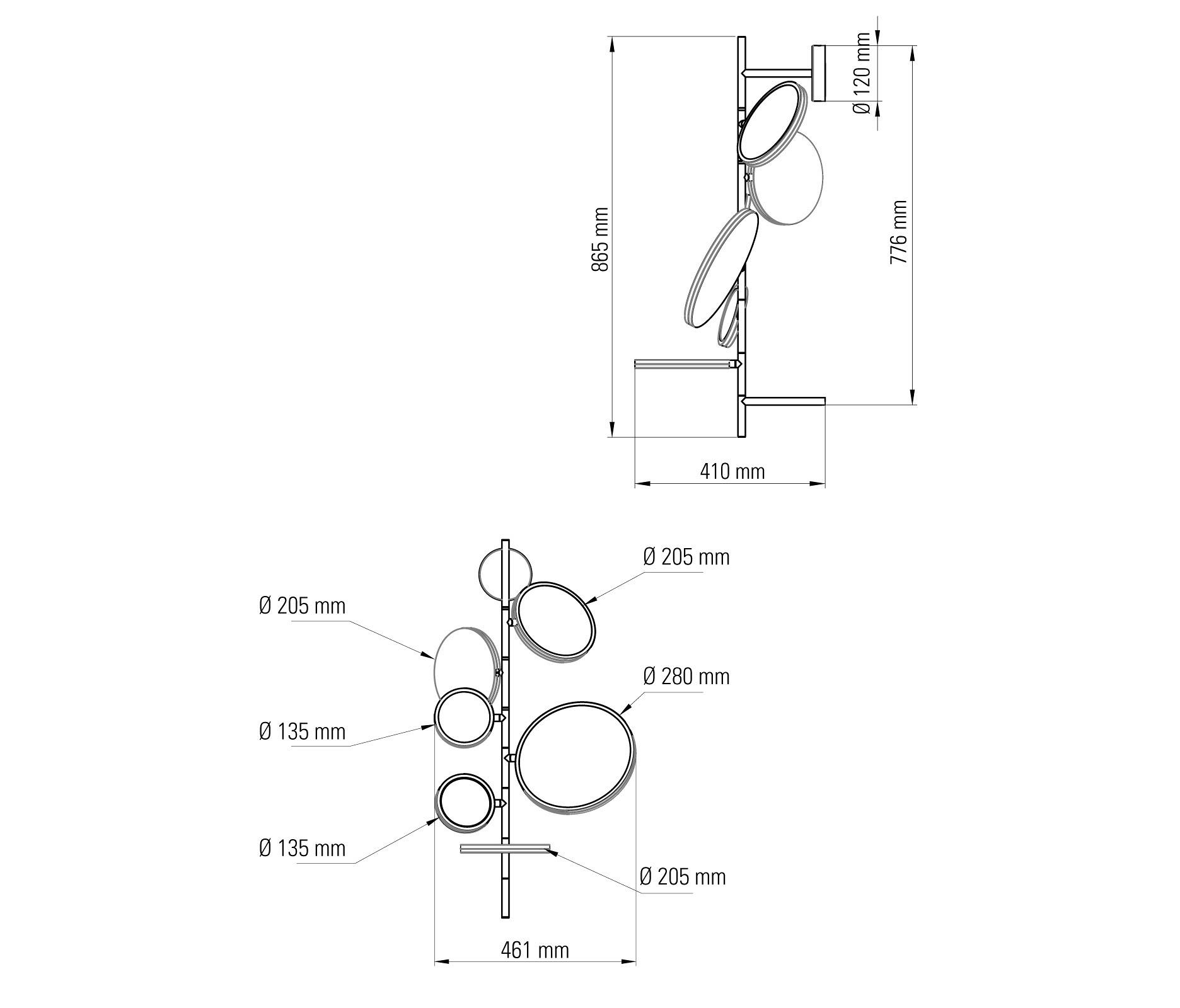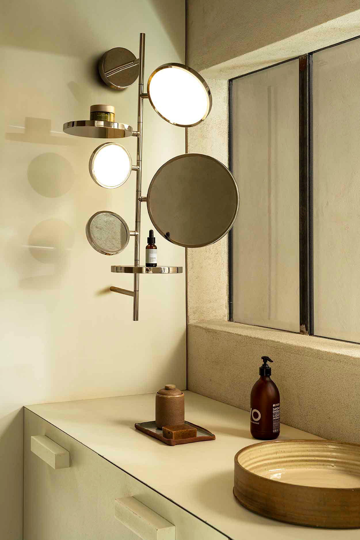Everyone has their own story, everyone has their present. Up close, or far away, it›s important to see clearly … 2 mirrors (magnifying mirror x3 - classic mirror), 2 light discs, 2 sideboards.